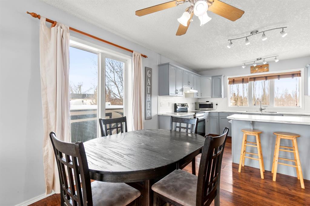 Tucked into a quiet cul-de-sac in Didsbury, this well-cared-for bi-level duplex is the kind of place that simply feels comfortable the moment you arrive. Surrounded by mature trees with walking paths and green space nearby, the location feels established and calm, while everyday amenities are just minutes away. Set on an impressive ~8400sqft pie-shaped lot, the fully fenced backyard is a standout, especially for a duplex. There’s room to spread out, let kids play, or give pets the space they deserve, with space to enjoy now and the potential to add a garage in the future, subject to municipal approval. RV parking along the side of the home plus a two-vehicle gravel parking pad out front adds even more flexibility for day-to-day living. Inside, the upper level is bright, open, and welcoming. The living room and kitchen flow together easily, creating a space that works just as well for quiet evenings as it does for having friends or family over. Big windows bring in loads of natural light, while modern paint updates and refreshed kitchen cabinetry keep things feeling clean and current. The kitchen offers a generous eat-up island, pantry storage, and a large window over the sink that looks out into the backyard, always a nice touch. Downstairs, all three bedrooms are located together, creating a cozy and functional lower level. Thanks to above-grade windows and southwest front exposure, the bedrooms feel light and airy, not like a typical lower level at all. In-floor heat keeps this space warm and comfortable through the winter months, and a full four-piece bathroom plus a dedicated laundry room complete the layout. For added flexibility, laundry hookups are also available on the main floor if that’s your preference.