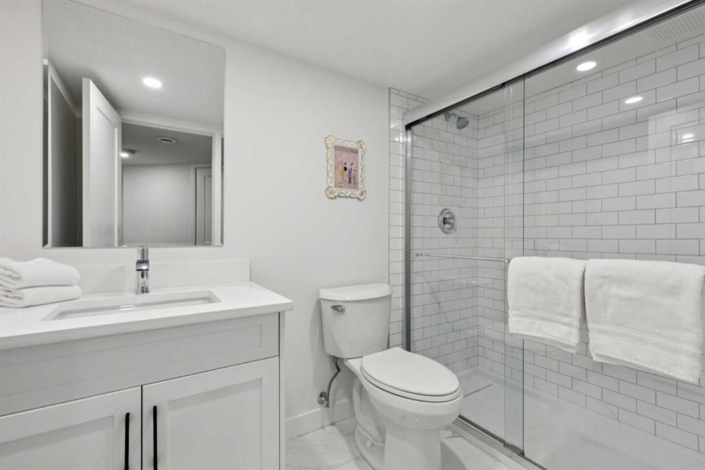 Upstairs, you’ll find three spacious bedrooms, including a primary retreat overlooking the private backyard. The primary suite offers a large walk-in closet and a 4-piece ensuite with a jetted soaking tub, separate shower, and full vanity. Two additional bedrooms with generous closets share a full guest bathroom, making this layout ideal for families. The fully finished basement adds incredible versatility, featuring a 3pc bathroom with shower, a large recreation area with room for multiple uses, and a bright fourth bedroom with its own oversized walk-in closet — perfect for guests, teens, or extended family.