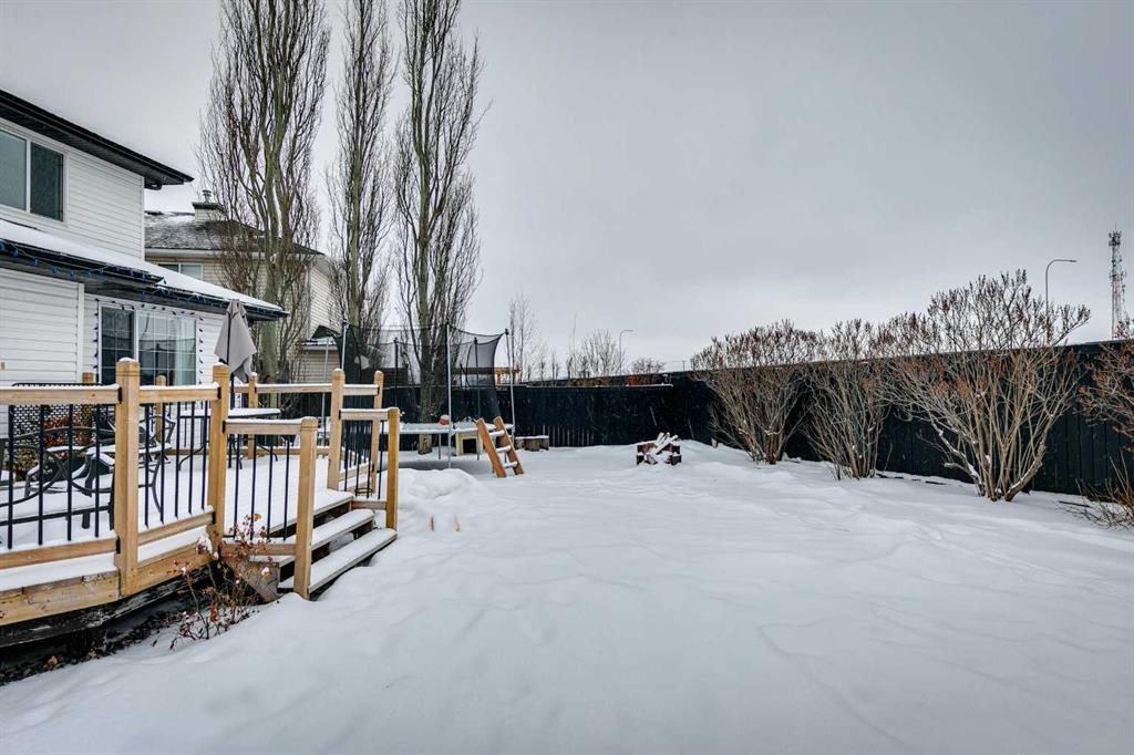 Lake living in Chaparral just in time for the beach season in this beautifully maintained and updated Jayman BUILT 2-storey detached home tucked into a quiet cul-de-sac in the sought-after lake community of Chaparral in Calgary. Set on a spacious pie-shaped lot with no neighbours behind, this property offers the privacy and yard space families are looking for. A grand front entry with a curved staircase and generous foyer creates an impressive first impression. The main floor features a bright, comfortable living room anchored by a fireplace and large window that fills the space with natural light. The kitchen is designed for everyday living and entertaining, showcasing brand new quartz island countertop with a breakfast bar overhang, extensive counter space, a walk-in pantry, and abundant cabinetry and drawers for seamless organization. There’s ample room for a dining table, direct access to the fenced backyard for easy indoor-outdoor living, and even a built-in desk area perfect for homework or a home office setup. Main floor laundry connects to the attached double garage, and a convenient half bath completes the level.