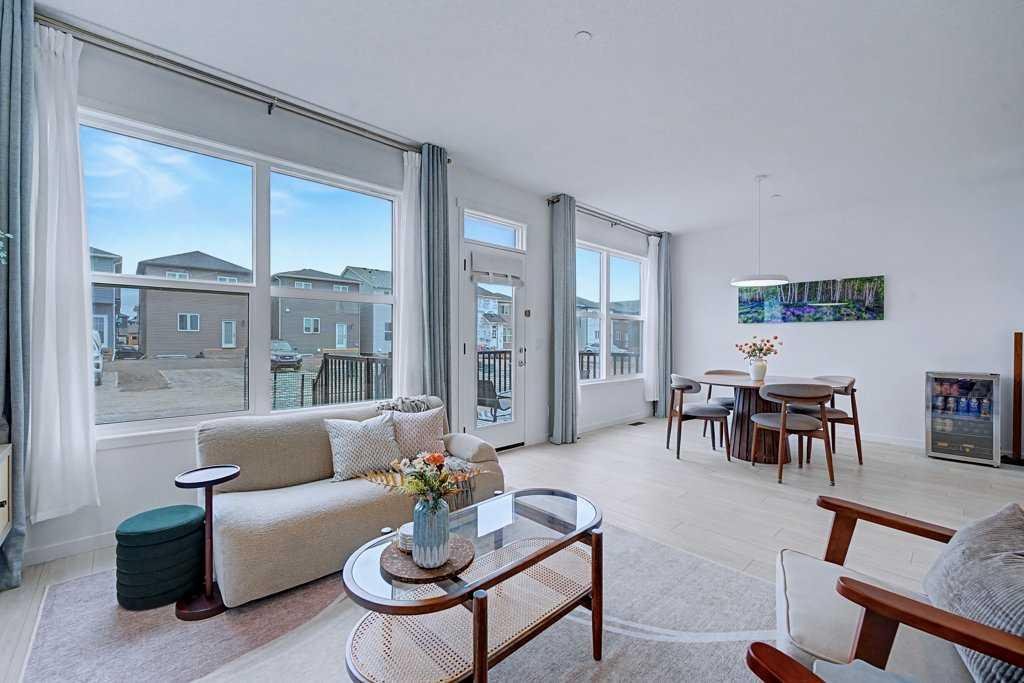 STUNNING MOUNTAIN VIEWS|FINISHED BASEMENT|TRIPLE-PANE WINDOWS. Looking for a new home and don’t have time to build…this newly built and immaculately maintained 4-bedroom, 3.5 bath 2-Storey property, built in 2024, is nestled on a fantastic lot across from a municipal reserve and boasts unobstructed city & mountain views. Offering a total of 2,845 sq ft across three thoughtfully designed levels, the “Tilsa” model by Hopewell blends functionality with comfort. The spacious main floor plan features a chef-inspired kitchen complete with sleek quartz countertops, central island, full height cabinetry and upgraded stainless-steel appliance package including gas stove & 30” glass hoodfan. The open-concept Dining/Family room area, with cozy gas fireplace, offer an abundance of natural light and the private flex room with upgraded barn door is ideal for a home office or kid’s play area. The upper level boasts a huge primary suite featuring a spa-inspired 5-piece ensuite and an enormous walk-in closet with convenient access to the laundry room complete with an additional solid surface folding area. The centrally located Bonus/Entertainment area is ideal for family gatherings, along with 2 additional generous-sized bedrooms and separate 4-piece bathroom. The FINISHED BASEMENT offers yet another Family room/movie area, 4th bedroom, 4-piece bathroom, workout area and loads of storage space. At the time of building the sellers upgraded the following: 10’ x 14’ ground level deck w/aluminum railing c/w gas line for BBQ, mineral wool insulation in the walls & ceiling areas in the basement bedroom/mechanical area, water softener, plus lighting & plumbing features throughout. A mere 5 min. east of Mahogany, with quick connections to Stoney Trail and Deerfoot, Hotchkiss offers a quiet, up-and-coming community feel with several parks, pathways, playgrounds, and wide-open prairie views. Everyday essentials, shopping, dining, and major services are a short drive away in nearby Seton and along 130th Avenue, with schools, recreation, and the South Health Campus comfortably within reach. If you’re after more space, modern design, and an easy commuter location this property is an absolute must see!