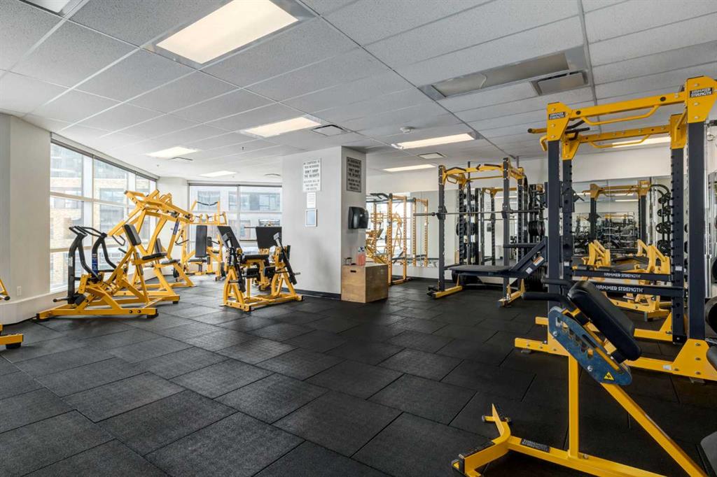 The unit includes a storage locker, bike storage, and one of the largest and most desirable parking stalls in the entire parkade, a rare and valuable offering in the building. Residents enjoy direct +15 access to Sunterra, a well equipped fitness centre, steam room, hot tub, owners lounge, and guest suites, all within a professionally managed concrete tower in the heart of the Beltline.