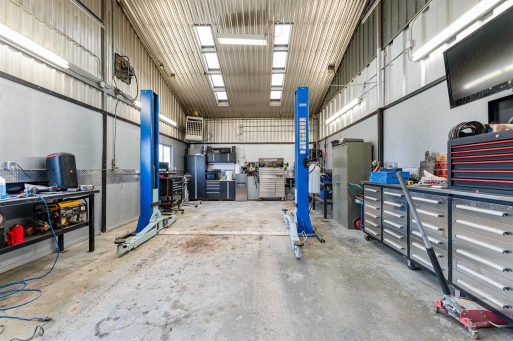THE SHOP: A 2,173 SqFt mechanic’s dream. This professional-grade workshop features a durable pressure-treated plywood substrate, fully insulated walls, and over 200,000 BTUs of heat from a natural gas infrared tube and two furnaces. Equipped with a 2-post, 220V automotive lift (15,000 lbs. capacity) and three new insulated 10-foot overhead doors.