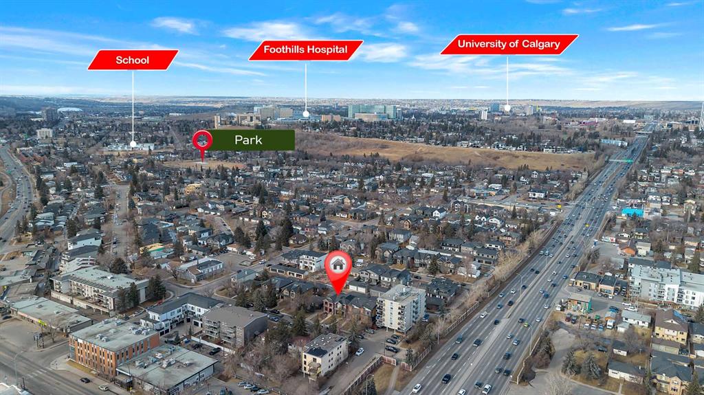 Just steps from the Bow River Pathway, you’re surrounded by parks, green space, and mature trees, yet minutes to downtown Calgary, and the Kensington Shopping District, and quick connections via Crowchild Trail / 16th Avenue (Highway 1) for easy commuting. Quick access to the Rocky Mountains, playgrounds, a baseball diamond, dog parks and grocery amenities such as Safeway and FreshCo are a bonus (Sunterra just a 1 min walk away)!