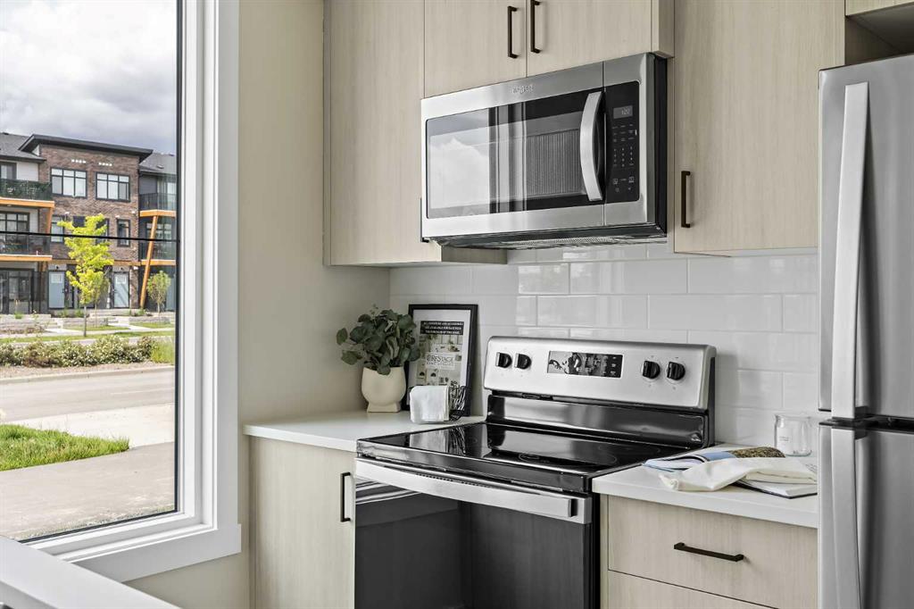 LIMITED TIME PROMOTION – 2 YEARS OF FREE CONDO FEES! Introducing Brightside at Seton by Brookfield Residential – where style meets convenience. This 1-bedroom, 1-bathroom townhome is ideal for first-time buyers or investors, offering an open-concept layout with upgraded finishes throughout. The Coltrane model features a modern kitchen with quartz countertops, stainless steel appliances, full-height cabinetry, a pantry, and a spacious peninsula island with seating. South-facing windows fill the living and dining areas with natural light, creating a bright and welcoming atmosphere all day long. Upgraded resilient LVP flooring flows throughout the entire unit and into the primary bedroom, meaning no carpet and a timeless look throughout. The primary suite offers a large closet and patio views, while a 4-piece bath, in-suite laundry, and extra storage add to everyday comfort. Complete with a titled parking stall, this home is located in Seton, one of Calgary’s most vibrant master-planned communities. Enjoy unmatched amenities right outside your door, including the YMCA, South Health Campus, restaurants, shops, grocery stores, and parks. With builder warranty and Alberta New Home Warranty included, you can purchase with peace of mind. Don’t miss the chance to own a brand-new, maintenance-free home with incredible value in the heart of Seton. **Please note: photos are from a previous build and finishes may vary.