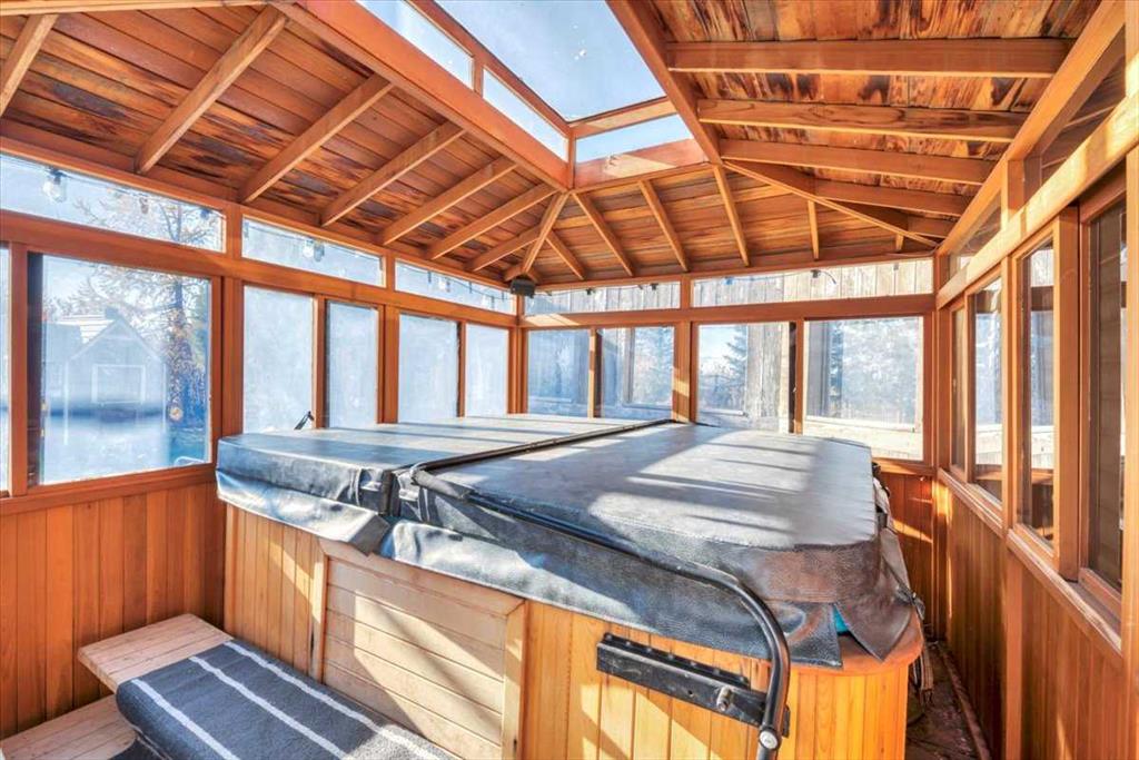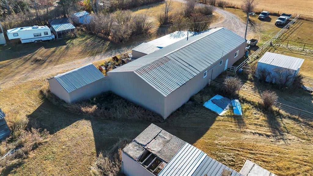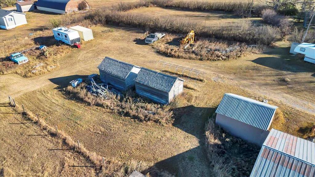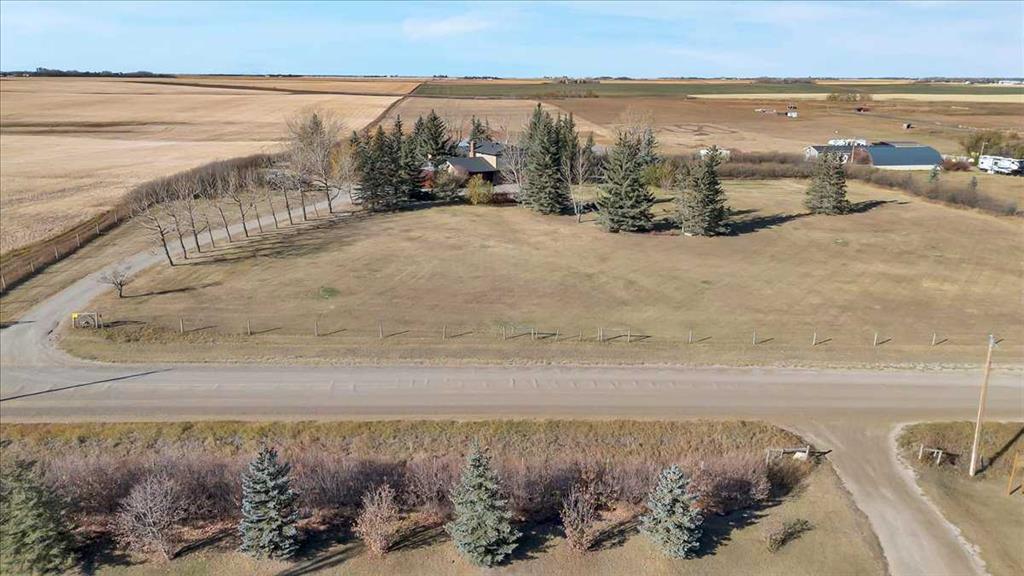 Outdoors, beautifully maintained grounds invite entertaining, gardening, and quiet evenings around the fire pit. Children can play freely, while an enclosed hot tub offers year-round relaxation just steps from the back door. The land is highly versatile, ideal for a hobby farm, horses, livestock, or a self-sufficient lifestyle. Previously used for cattle, boarding horses, and now for growing hay, the property is well setup for a variety of agricultural uses. A partially heated shop-barn includes equipment space, a heated tack room, three horse stalls, and additional storage. An attached greenhouse supporting multi-season gardening. Steel-fenced paddocks with shelters, stocked hay storage, and multiple outbuildings support livestock and equestrian use. A riding arena and dugout further enhance the property’s rural functionality. The property is fenced for mixed use. With two wells, buried water lines, and a reliable domestic water and septic system, infrastructure is in place. South-side placement of structures offers potential subdivision opportunities, subject to approvals.