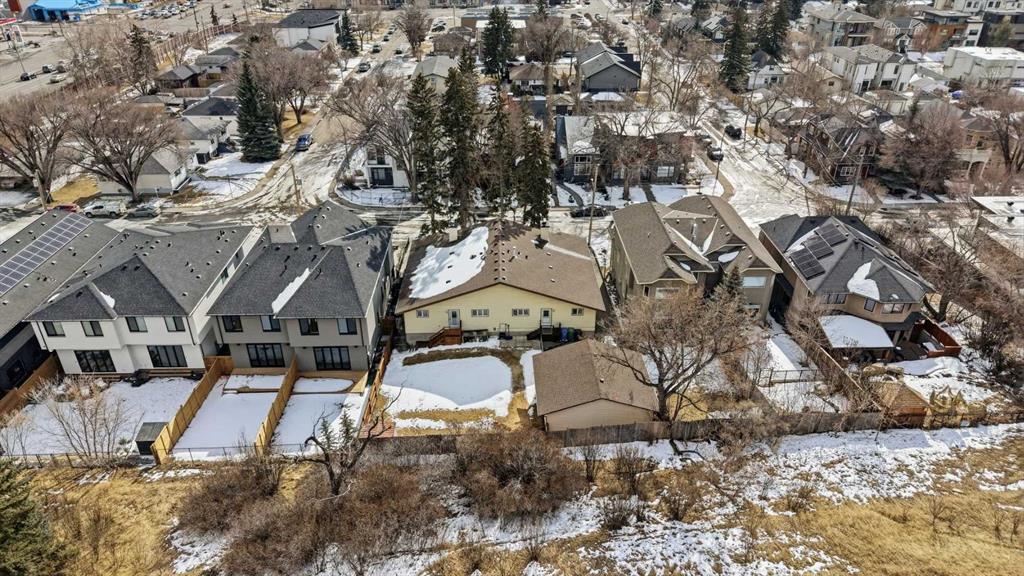 Positioned on a massive 73’ x 130’ lot backing directly onto green space, this full duplex presents a compelling opportunity for builders, investors or renovators in the highly desirable community of West Hillhurst. A flexible configuration with 2 main level dwellings and an additional illegal basement suite creates 3 separate living spaces while offering long-term redevelopment potential on an oversized inner-city parcel. Mature trees frame the property while the green space behind removes rear neighbours, creating a sense of openness and privacy rarely found this close to the city core. Both main level homes feature functional and spacious layouts designed for comfortable everyday living. Large front foyers welcome residents and guests while creating practical separation from the main living areas. Bright living and dining spaces centre around striking wood burning fireplaces encased in stone, delivering warmth, character and a natural gathering place during colder months. Patio sliders extend the living space outdoors to front facing balconies where sunny south exposure provides an ideal setting for morning coffees or evening relaxation. The kitchens are efficiently arranged with stainless steel appliances, generous cabinetry, ample counter space and dedicated breakfast nooks that support casual meals and daily routines. Each main level residence includes a primary bedroom with its own private 2-piece ensuite, eliminating the need for late night trips down the hall, along with 2 additional bedrooms and a full 4-piece bathroom. Lower level space under Unit 2530 remains largely unfinished aside from a spacious foyer entry, leaving significant storage capacity or future development possibilities. A separate illegal basement suite under Unit 2532 expands the property’s flexibility with its own living room featuring a wood burning fireplace, full kitchen, 1 bedroom and a 4-piece bathroom. Outdoor space is equally impressive with a huge fenced backyard that backs directly onto green space for added privacy and uninterrupted sightlines. An oversized double detached garage is complemented by an extra long driveway, creating abundant off-street parking for residents and guests. The location further strengthens the property’s appeal within this established inner-city neighbourhood, minutes from downtown while still offering quick access to the Bow River pathway system, nearby parks, schools and the vibrant shops and restaurants of Kensington. Sizeable lots, mature streetscapes and ongoing redevelopment continue to support strong long-term value in this sought-after community.