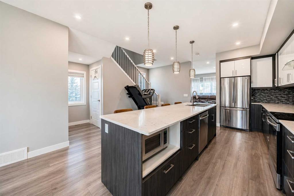 Welcome to this well-maintained & versatile 3+1 bdrm with an additional office/den home, ideally located on a quiet, tree-lined street with quick access to downtown (appx 6 min drive) or a short walk to the C-Train. Offering 3F/1H bathrooms & over ____ Sq. Ft of developed living space, very well suited for families, professionals, or investors. The main level features bright, functional living space with large windows that bring in plenty of natural light. Kitchen stands out with upgraded 2 tone cabinets, stylish backsplash, quartz countertops & large island that provides both workspace & a natural gathering point. A dedicated office/den offers views of downtown & Rocky Mountains the ideal setting for working from home. Upstairs, the primary suite offers a spacious retreat, spa-like 5 piece ensuite & large walk-in closet. Top-floor laundry adds convenience, along with 2 additional good-size bedrooms & full bathroom. The fully developed walkout basement features large windows & its own private entrance (previously generated strong income through Airbnb). This flexible space works well as a mortgage helper, short-terms rental, or additional living space for extended family or teens. Enjoy a sunny, south-facing, fully fenced backyard with a great size deck directly off the kitchen…perfect for relaxing or entertaining. Oversized double garage with lane access comfortably accommodates a full-size truck & SUV. Easy access to Deerfoot Tr, Memorial Dr & Barlow Tr. Close to schools, shopping & major attractions including Calgary Zoo, Stampede Grounds & the future Calgary Arena District. Originally owner occupied & now has been leased to the same tenants for the past three years by a professional management company, reflecting consistent care & maintenance. Currently leased until June 30, 2026 for $3350./ month, with great tenants willing to stay.