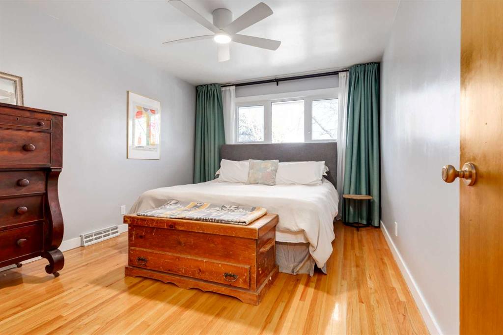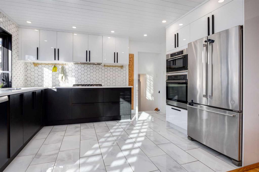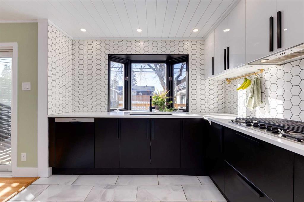 Located on a serene, tree lined street in the heart of one of Calgary’s most desirable northwest communities; this beautifully renovated four level split offers a perfect balance of timeless mid century character and modern design. With over 1,950 square feet of thoughtfully developed living space, this home is filled with natural light and showcases hardwood flooring, shiplap ceilings, warm wood paneling and a welcoming, well curated aesthetic throughout. The main level features a bright, open concept layout ideal for both everyday living and entertaining. At the heart of the home is the stunning designer kitchen, complete with two tone cabinetry, quartz countertops, premium stainless steel appliances and generous preparation and gathering space. The adjacent living and dining areas flow seamlessly, creating a comfortable and inviting environment. Upstairs, you will find three spacious bedrooms and a beautifully updated full bathroom. The lower level adds exceptional versatility, offering a fourth bedroom or home office, a renovated three piece bathroom and a functional combined laundry/mudroom designed to keep daily life organized. One level below, the cozy family room features a stylish electric fireplace with a wood slat accent wall; an ideal space for movie nights or relaxing evenings. Additional flexible space on this level is well suited for a playroom, home gym, or hobby area. Step outside to enjoy the private, south facing backyard, surrounded by mature, fruit bearing trees and lush landscaping. This outdoor space is perfect for entertaining, family activities or simply relaxing in the sun. Completing the home is an exceptional parking and storage setup, including a double detached garage plus a single attached garage, providing ample flexibility year round. What truly sets this home apart is its prime location in sought after Charleswood; a peaceful, family oriented community known for its mature trees, rolling terrain and proximity to key amenities. Enjoy easy access to the University of Calgary, top rated schools, Nose Hill Park and Confederation Park, C-Train transit, Triwood Arena and Community Centre, Brentwood Village, Market Mall and more. This is a rare opportunity for families, professionals, or anyone seeking a beautifully updated home in a vibrant yet tranquil setting. View the video tour via the media link and book your private showing today!