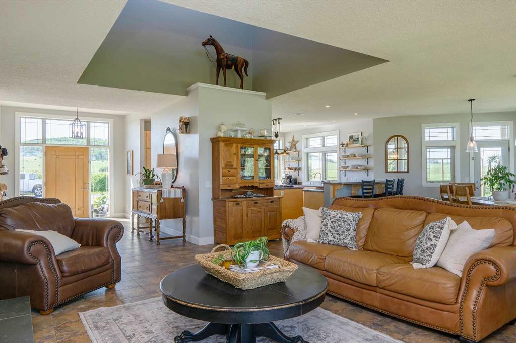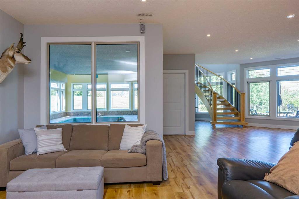 Set along the edge of the Jumping Pound Creek Valley, this remarkable 59-acre parcel is anchored by a thoughtfully designed custom residence, where architecture and landscape come together in perfect balance. Intentionally designed to maximize 360 degree views, this home captures the mountains to the West with valley and foothill vistas to the west and north and north – creating a living experience that feels both expansive and deeply connected to its setting. The walkout bungalow offers generous proportions and open, light-filled spaces that invite the outdoors in. Large expanses of glass frame the ever-changing wildlife filled landscape, while the layout reflects a careful consideration of how the home is lived in, with four bedrooms and three and a half baths designed to accommodate both everyday comfort and gathering. Positioned within the county, the eastern property boundary shares a property line with the town which services the property with a 2026 paved road & planned sidewalks, leading to two K-8 schools and commercial restaurants and services and offers a rare balance of privacy and accessibility. A newly completed custom 2023 accessory dwelling unit is permitted as a short term rental in a separate serviced yard site, which adds flexibility for extended family, guest use, or a guest house or office and workshop. Beyond the home, the land itself presents additional potential, whether as a private estate, an equestrian setting, or a longer-term vision for thoughtfully planned lots though further subdivision as Cochrane grows. A property defined by design, setting, and the freedom to shape what comes next.