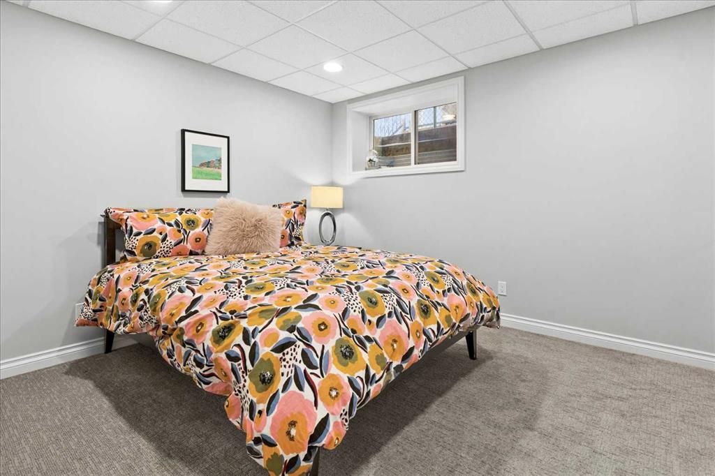 Upstairs, retreat to the breathtaking primary bedroom with gas fireplace and access to a private balcony—the ideal place to enjoy your coffee at sunrise or take in the mountain views at sunset. The ensuite is a stunning 7 pce spa-like retreat with underfloor heating. Two additional bedrooms, a beautifully renovated 4-piece bath, over sized family/media room and convenient upper-level laundry complete this level. The fully developed lower level offers additional living space including a fourth bedroom, generous family room, work out area and a renovated 3-piece bathroom—ideal for guests or growing families.