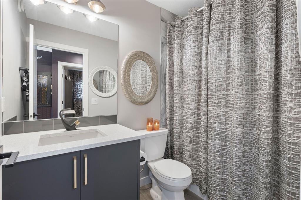 The upper level is home to a generously sized primary retreat featuring a stylish 3-piece ensuite with quartz countertops and modern tile flooring. Two additional bedrooms, a full bathroom, and a convenient upper-level laundry room complete this level, offering both comfort and functionality for everyday living.