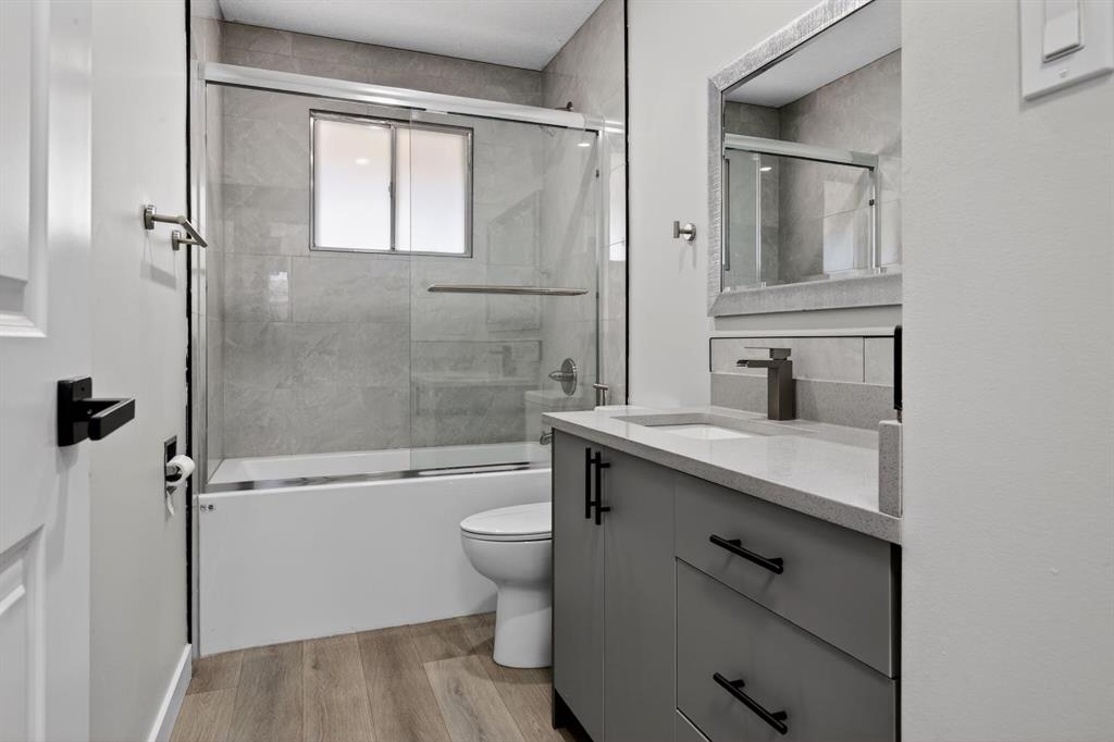 The interior showcases durable wide-plank vinyl flooring, a bright open layout, recessed lighting throughout, and a fresh, cohesive colour palette. Every detail has been refreshed, including new doors, trim, and finishes, giving the home a polished, turnkey feel. At the heart of the home is a striking kitchen featuring sleek cabinetry, granite counters, a porcelain marble backsplash—designed to be both stylish and practical for daily life and entertaining.