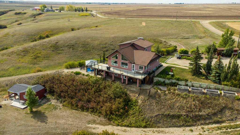Don’t miss the CHANCE OF A LIFETIME to own this stunning 16+ ACRE PROPERTY near Carseland that is truly the stuff that dreams are made of… Perched high above the BOW RIVER VALLEY you’ll enjoy SWEEPING PANORAMIC VIEWS of the RIVER VALLEY, WYNDHAM-CARSELAND & JOHNSON ISLAND PROVINCIAL PARKS as well as The ROCKY MOUNTAINS from every level of this custom built home. Ideally located to allow for BOTH SUNRISE AND SUNSETS VIEWS that will take your breath away every day. MATURE TREES AND RAISED GARDEN BEDS surround the 1744 sq ft home and there’s plenty of room left for parking or to possibly ADD A GARAGE OR SHOP. There is even a CHICKEN COOP if you want to embrace your inner farmer. Inside you’ll be wowed by the SOARING VAULTED CEILINGS and WALL OF WINDOWS showcasing your spectacular views. A STONE FACED GAS FIREPLACE provideS both warmth and ambience. The living room is open to the spacious and well planned kitchen featuring GRANITE COUNTERS and STAINLESS STEEL APPLIANCES including a GAS STOVE. The spacious floor plan of this home accommodates LARGE SCALE ENTERTAINING yet has WARM AND INTIMATE AREAS FOR EVERYDAY FAMILY LIFE. 2 good sized bedrooms on this level are perfect as kids rooms or for guests. And you can’t help but feel inspired as you work, study or create from home in the incredible CORNER OFFICE with a view, a 2nd gas fireplace and French doors. Imagine being able to step out onto the 10’x51’ deck to enjoy your coffee break along with the splendour of your surroundings. On the top floor you’ll find a PRIVATE AND LUXURIOUS OWNER’S RETREAT that encompasses the entire level. It’s flooded with natural light and includes a 3 pc ensuite as well as a huge walk in closet/dressing room. The WALK OUT BASEMENT is bright, sunny and open with a great sized recreation area as well as a large office that could easily be turned into a bedroom by adding a closet. A huge full bath and ample storage complete this level. Step outside to find the COZY AND WELCOMING STAMPED CONCRETE COVERED PATIO that is protected from the elements on 3 sides extending your patio season and perfectly framing your RIVER VALLEY VIEW. This is the perfect place to relax and unwind with family and friends over a morning coffee or evening glass of wine. A COZY GAZEBO AREA WITH NATURAL GAS FIRE-PIT provides yet another oasis in the INCREDIBLE OUTDOOR LIVING this home provides. Down a small slope is the ultimate surprise – a COZY AND RUSTIC 1 BEDROOM CABIN with an adorable front porch, KNOTTY PINE SHIPLAP interior, a KITCHENETTE, small bathroom and COZY ELECTRIC FIREPLACE. Your kids, grandkids and guests alike will fall in love with this SECLUDED LITTLE HIDE OUT. As you spend your days in the SERENE AND TRANQUIL surroundings where you can fish, canoe, explore the trails on foot or by ATV not to mention come face to face with local wildlife it will be hard to believe you are still an easy commute to Calgary, Carseland and Strathmore. It really is a rare opportunity to have the BEST OF BOTH WORLDS.