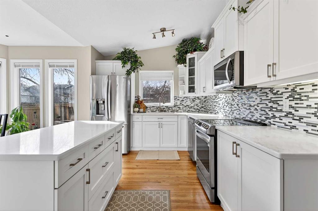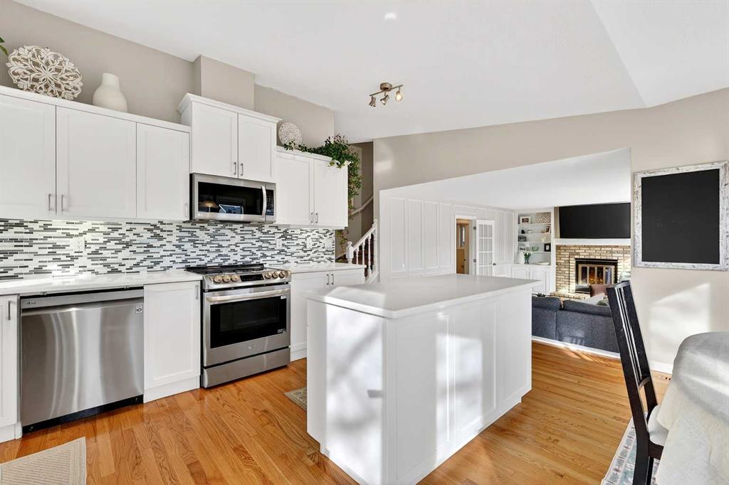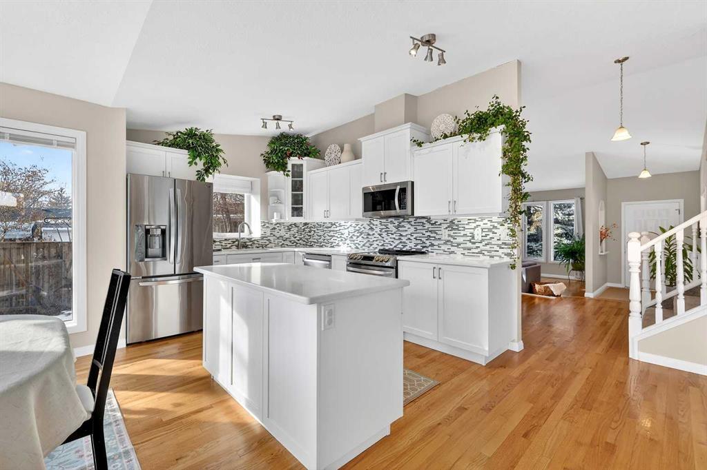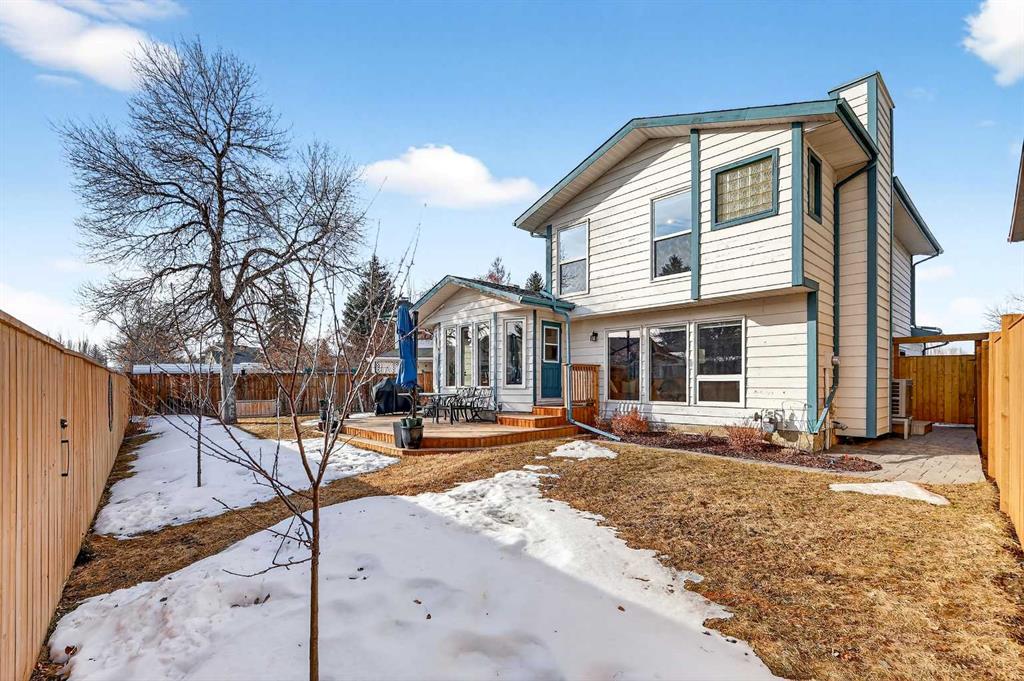 Tucked away on a private, quiet cul-de-sac in the highly sought-after lake community of Sundance, this meticulously maintained and extensively updated home offers the perfect blend of location, lifestyle and long-term value. Just steps from the summer entrance to Lake Sundance, Sundance School and Father Whelihan School. Enjoy year-round lake access along with walking distance to playgrounds and pathways to Fish Creek Park. Situated on a sunny south-facing pie-shaped lot with a paved back lane, RV gravel pad and custom gate (2022), this property offers incredible outdoor space including a new deck (2023) with gas line for BBQ, new fencing (2022 & 2025), stamped concrete walkway, storage shed and even a mature grapevine that produces dark purple grapes perfect for homemade jam. Inside, vaulted ceilings create an airy feel in the formal living and dining areas, while the updated white kitchen features quartz countertops, backsplash, newer appliances including an electric induction stove (2 years old), and overlooks the inviting family room with a stunning brick wood burning fireplace (with recent WETT inspection) and built-ins. A French door separates the rear mudroom/laundry area with 2-piece bath, side entrance and access to the garage- ideal for multigenerational living or future suite potential. The fully developed basement includes a large bedroom with walk-in closet, 4-piece bath, wet bar, generous family room; previously used as a rental, with existing fridge included. Upstairs offers three spacious bedrooms including a generous primary retreat with french doors, a walk-in closet and updated 4-piece ensuite, plus an additional full bath with quartz and new tile. Major upgrades provide peace of mind: new furnace and hot water tank (2024), new electrical panel (2024), radon remediation ASD System (2023), most windows replaced with triple pane, new carpet, new fire alarms throughout, updated caulking, Nest thermostat, central vac with attachments, and NO Poly-B plumbing. Roof shingles replaced (2016). Central A/C is newly installed (see member remarks). With amazing neighbours and a truly special street known for its strong sense of community and family-friendly atmosphere, this is a rare opportunity to own a move-in ready home in one of Calgary’s most established and beloved lake communities.