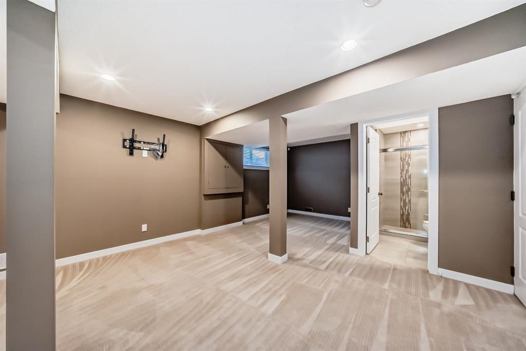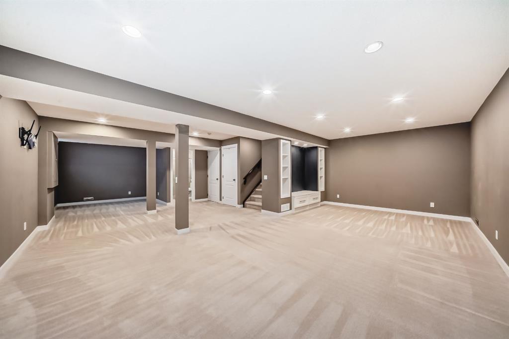 The main floor is designed for both the professional and the entertainer, featuring a private home office with double glass doors and an open-concept kitchen equipped with custom cabinetry, quartz countertops, and stainless steel appliances. Upstairs, the primary suite serves as a true retreat with a spa-like ensuite and deep soaker tub, complemented by a central bonus room and two additional generous bedrooms. The fully finished lower level provides a versatile space for a home gym or media room without compromising on storage. Minutes from elite schools like Webber Academy , Rundle College, and the amenities of Aspen Landing, this home is a masterclass in West Side living.