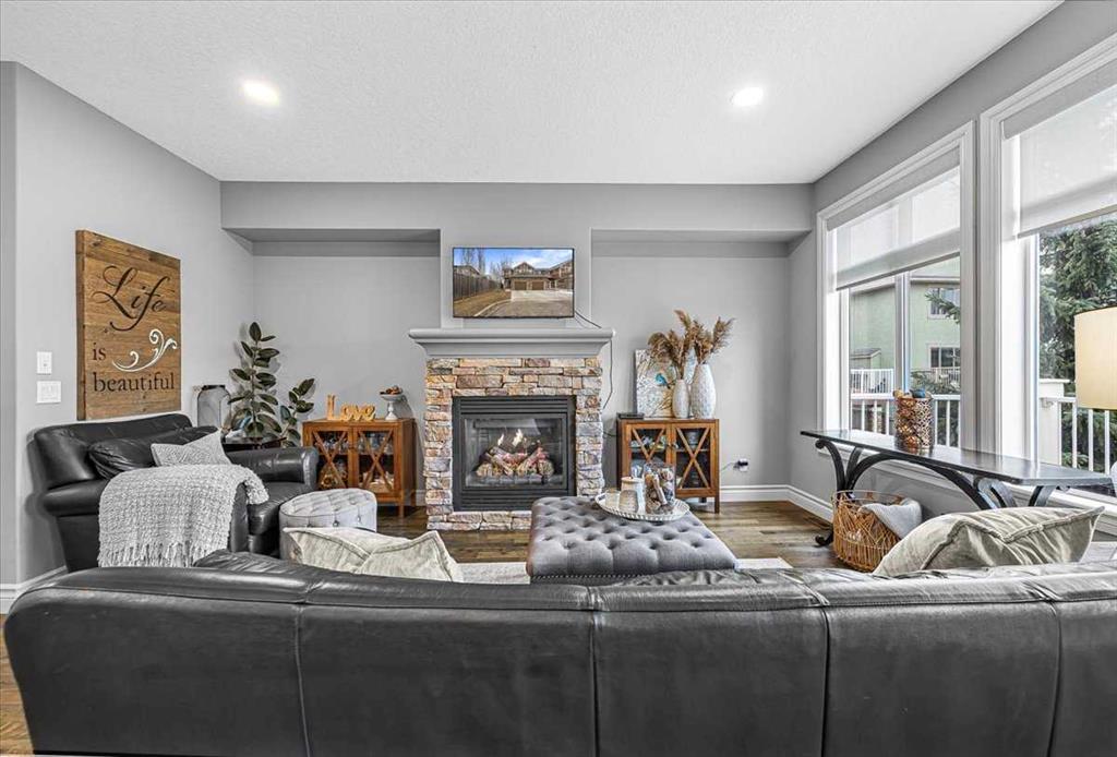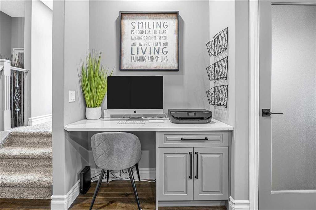 Welcome home! This upgraded 3 bedroom townhome is ready to welcome it’s new owners in style. It is in a fantastic location, walking distance to groceries, and quick access to downtown High River, or drive a few minutes west and hop on the highway! With luxurious upgrades, a fantastic location, and a stellar view, you won’t want to miss it! When you enter the home, you are met with a spacious foyer and 2 full coat closets, the garage and ½ bath are to your right. Following the hardwood floors into the kitchen, you have plenty of space for work and living, the desk nook is perfect as a desk, or you can set up your personal coffee bar. The kitchen and nook have completely redone cabinets and new quartz countertops, all of the appliances were updated in 2022. The living room lends itself to cozy evenings with the fireplace, or rambunctious board game nights. In its current configuration, the dining room seats 6, but with a different layout could seat more! The back deck is the perfect place for morning coffee, or an afternoon BBQ. Upstairs, the stairwell windows bring in lots of light, in the hallway, the Washer and Dryer are centrally located to make laundry a breeze. To the left, the primary bedroom comfortably fits a king sized bed, and 2 dressers! The 3 piece ensuite comes complete with more linen storage, new quartz counters, and plenty of cabinet storage. The attached walk in closet comes with a customizable closet organizer. Towards the 2nd and 3rd bedrooms, you’ll find another linen closet, and 4 piece bathroom that is fully redone. Both bedrooms will fit a queen sized bed and a dresser, with enough space for a desk in each on top of that! In the basement, you’ll find another 4 piece bathroom. The basement rec room comes complete with a dry bar and fridge, and direct access to the fenced concrete patio. This home has had almost everything refreshed and redone, each and every cabinet has been resprayed, all the appliances updated, a new hot water tank in 2021. This home is beautiful to walk through and displays real pride of ownership, so book your private showing today!
