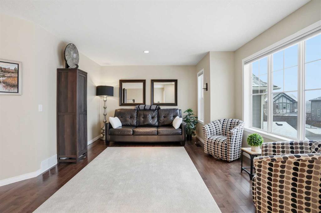 Welcome to 26 Sage Valley Mews! Step into immaculate luxury with this stunning family home, perfectly situated on a massive, beautifully landscaped corner lot. Located moments away from scenic walking paths, parks, and shopping, this property offers a fantastic location for families. As you enter, you are greeted by a grand foyer featuring a vaulted ceiling and a gorgeous chandelier. Moving through the foyer, the expansive main floor opens into a versatile flex area—currently a grand dining space, but easily adaptable into a home office or kids’ play area. At the heart of the home is the spectacular gourmet kitchen, a true showstopper featuring double wall ovens, a gas cooktop, granite countertops, and a walkthrough pantry with a newly added custom spice rack. The adjacent living room is the perfect place for entertaining or cozying up, anchored by a newer floor-to-ceiling stone surround on the gas fireplace. The sunny breakfast nook provides plenty of room for an additional table and features large sliding doors that open to your oversized yard. Step outside to enjoy the lush backyard oasis complete with a concrete patio, vibrant flower beds, a firepit area, multiple sheds, and still plenty of room for a play structure and kids to run around. Back inside, the main floor is completed by a highly functional custom mudroom with built-in storage and a sink, plus a convenient 2-piece bathroom. Upstairs, they’ve updated the entire flooring with newer hardwood and carpet throughout. Even with the vaulted ceiling from the foyer, there’s still a great-sized bonus room and 3 generously sized bedrooms. The primary suite is a true retreat, easily accommodating a king bed and all your bedroom furniture, featuring a luxurious 5-piece ensuite and a walkthrough closet that connects to the attached laundry room, allowing you to easily do your laundry and simply close the access door when you’re done. A well-appointed 4-piece bathroom completes the upper level. Down in the fully finished basement, you will find the extra bedroom, a 4-piece bathroom, a craft room, and a dry bar area. It also features an incredible hockey-designed rec room with a stadium backdrop on the wall and the perfect setup for hanging your Flames jerseys. The sellers have meticulously updated this home, adding new shingles, siding, eavestroughs, fascia, a new garage door, Gemstone exterior lighting, a new hot water tank, a new water restrictor valve, fresh paint and new light fixtures throughout. Located in the vibrant community of Sage Hill, you are minutes from local amenities, offering an exceptional lifestyle and quick access for a seamless commute. Upgraded and move-in read, this truly isn’t one you’ll want to miss!