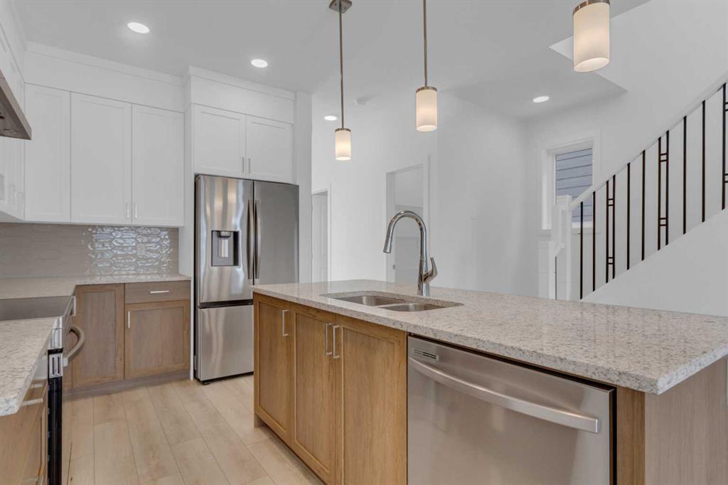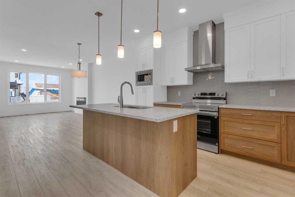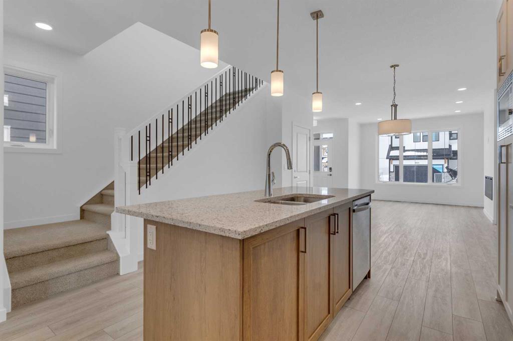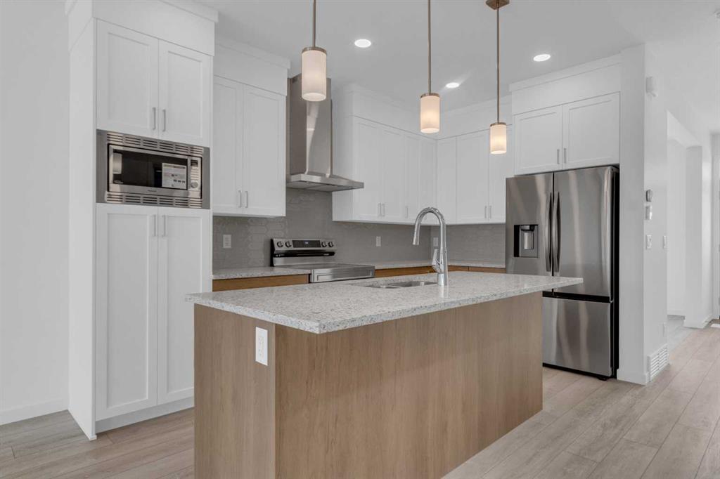 Introducing The Cohen; An amazing Comm Brand new attached by Excel Homes offering 1743 sq ft above grade, with a Fully developed, two-bedroom legal suite, with private separate entrance. This beauty is perfectly situated in Seton ridge, around the corner from a massive playground, sports field and future school. SETONRIDGE, Calgary’s newest urban hub directly south of Seton with sweeping views of the Bow River Valley And minutes from the bustling Seton Urban District with its restaurants, theatres, shopping, and essential services. Residents will love access to SHOA Club, A 14,000 square foot recreation facility. Step into a Life of luxury and convenience where every detail has been meticulously crafted for comfort and style. Enjoy the benefits of living in an established neighborhood that brings a plethora of amenities right to your doorstep. Enjoy swift access to major highways. This home offers a sprawling 1743 square feet of thoughtfully designed living space perfect for both families and entertaining. The open floor plan, complemented by neutral designer tones, creates a welcoming atmosphere that is both elegant and comfortable. The chef quality kitchen stands as the heart of the home, equip with ceiling height cabinets, two banks of pot/pan drawers, an upgraded stainless-steel appliances, including chimney fanned a built-in microwave. The engineered stone countertops, a large island with seating, and a convenient pantry Make it a dream kitchen for those who love to cook and entertain. The main floor also features versatile luxury vinyl plank flooring. On the main floor you will also find a flex room that can be used as a home office, guest bedroom or playroom, and a half bath for convenience. Up to the second level where leisure meets luxury in the large central bonus room featuring vaulted ceilings and pot lighting: Ideal for movie nights and family gatherings. The primary bedroom is a true retreat boasting a walk in closet and a spa like ensuite with stone vanity tops, dual sinks, and double size shower. Two more generously sized bedrooms provide ample space and easy access to the main bathroom. Convenience continues with a laundry room strategically located on the same floor. The possibilities extend into FULLY DEVELOPED, TWO BEDROOM, TWO BATHROOM BASEMENT SUITE. Additionally, your suite is built to upstairs standards & features a full kitchen w/lots of storage cabinets, SS appliances, PRIVATE laundry, vinyl plank flooring. Don’t miss the chance to own this never lived in gem w/quick possession available. This home will included front sod, gravel to the side yard and a 20 x 20 gravel parking pad. This is a Certified Built Green home w/platinum rating!