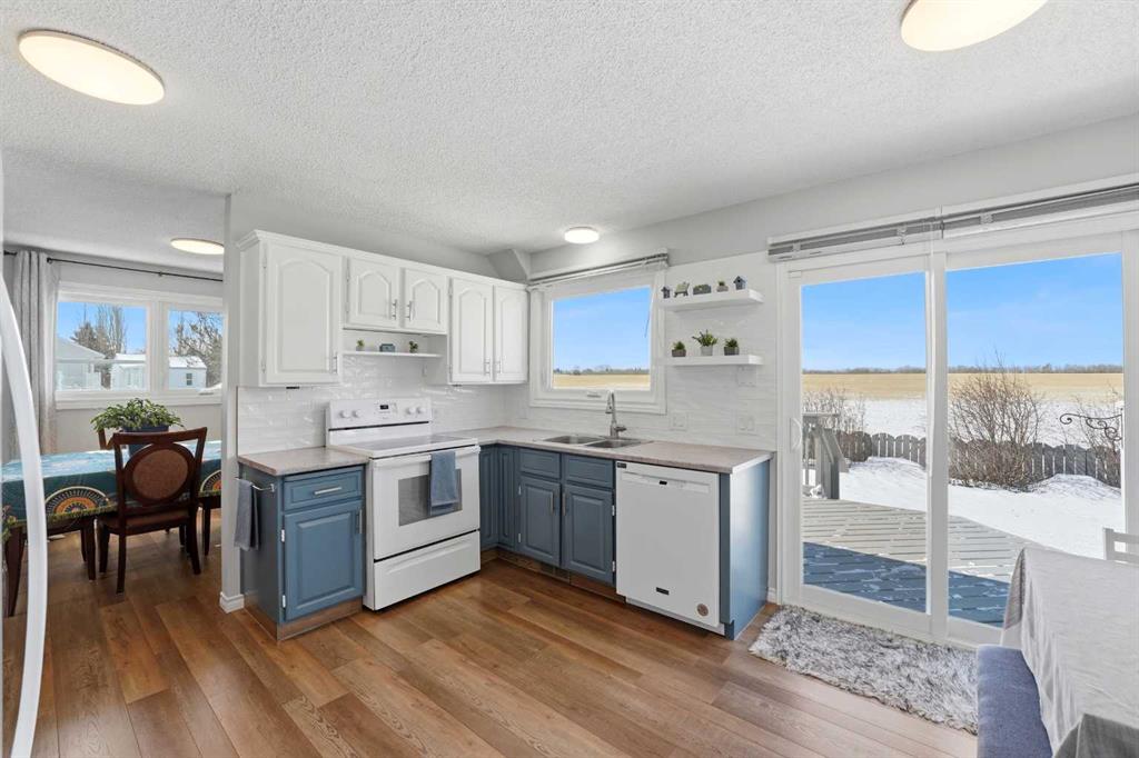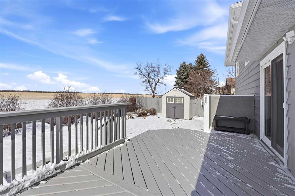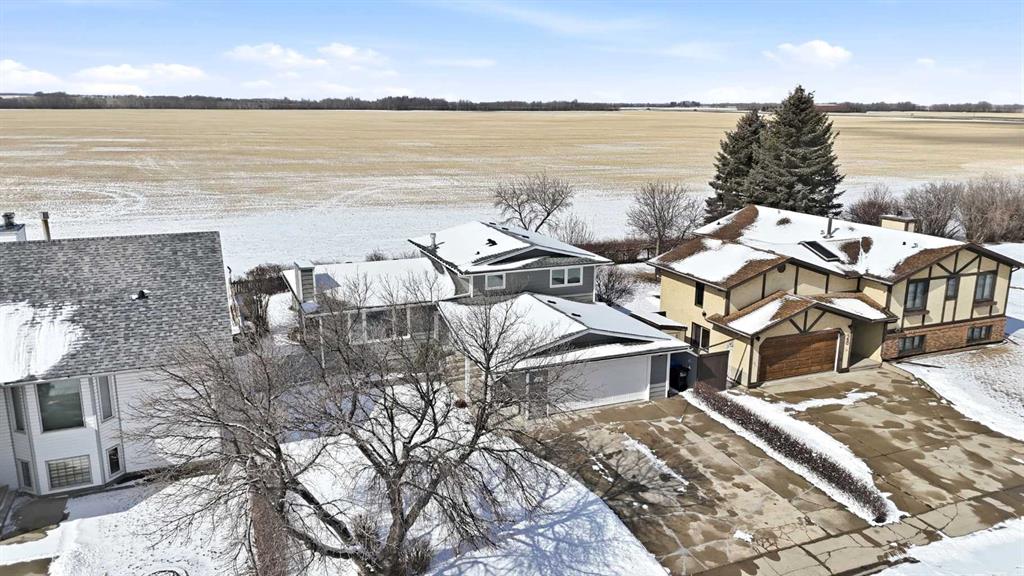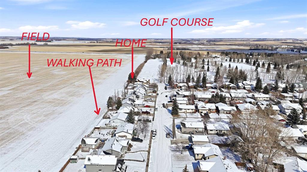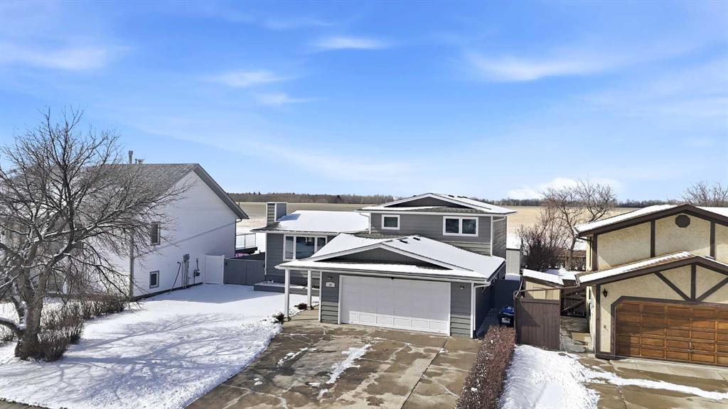 Welcome to this beautifully maintained 4-level split in Didsbury, offering over 1,860+ sq ft of above-grade living space in one of the most desirable locations in town. Backing directly onto open fields with unobstructed views, a walking path just steps away, and located only two doors from the golf course, this property delivers a rare blend of privacy, scenery, and convenience. The exterior showcases timeless cedar siding, complemented by mature landscaping, vibrant perennial flower beds, and established Saskatoon bushes that have produced abundant fruit in recent years. Enjoy peaceful mornings and evening sunsets from the back deck, now enhanced with new railing (2025). Inside, the home has been extensively updated over time. The kitchen features newer countertops and backsplash (2022), while all three bathrooms were fully renovated in 2018, offering modern finishes throughout. Flooring has been completely replaced (2019–2021) with a combination of laminate, luxury vinyl plank, and carpet, along with updated baseboards and LED lighting throughout the home and garage (2019–2023). The functional layout includes a separate entrance to the upper basement (above-grade level)—ideal for guests, extended family, or added flexibility. Major mechanical and exterior updates provide peace of mind, including: Roof, eavestroughs, soffit & fascia (2022), Hot water tank (2021), Windows & doors (majority replaced in 2024; some in 2016), Attic insulation upgraded to current code (2024). Car enthusiasts and hobbyists will love the double attached insulated and heated “dream” garage, complete with a hardwired heater. Additional features include a durable vinyl shed, updated side gate (2025), and ongoing maintenance with various electrical, plumbing, and exterior improvements completed over the years. Appliances have also been upgraded: Maytag dishwasher (2023) and Whirlpool fridge with water/ice (2025). This is a rare opportunity to own a thoughtfully updated home in an unbeatable location—offering space, views, and long-term value.