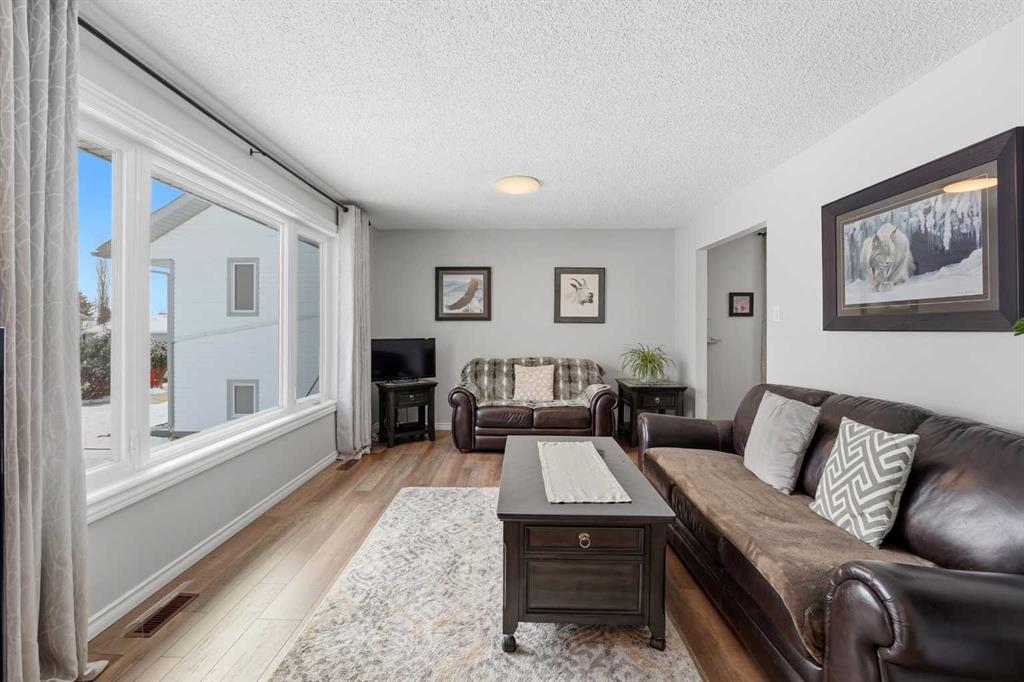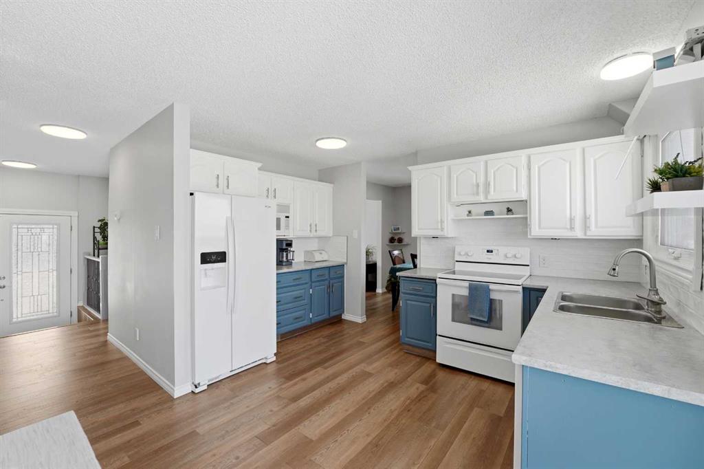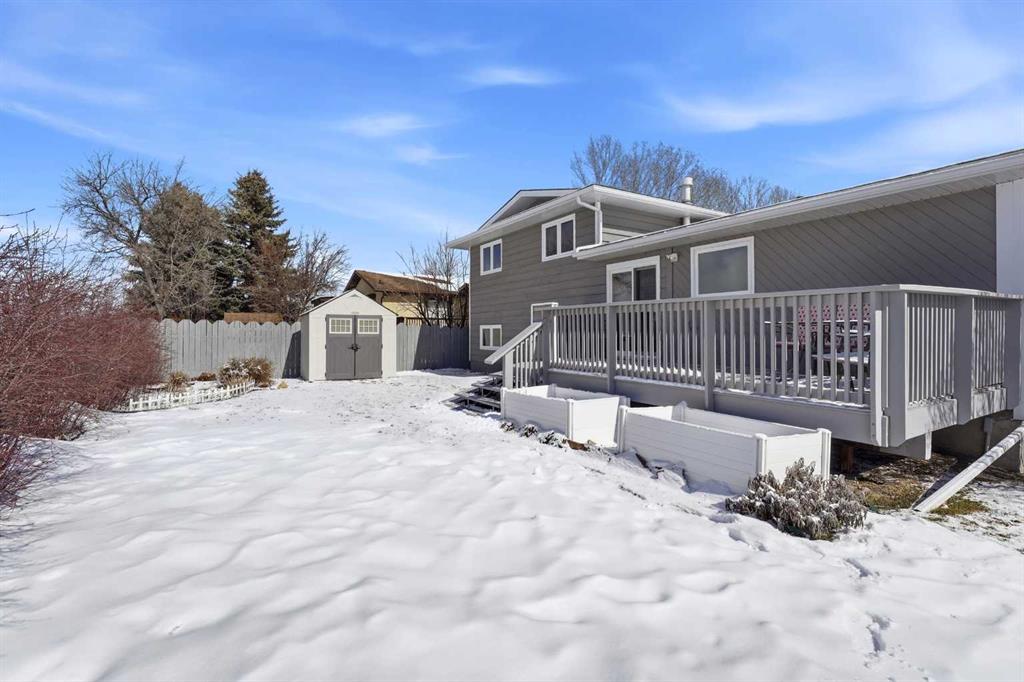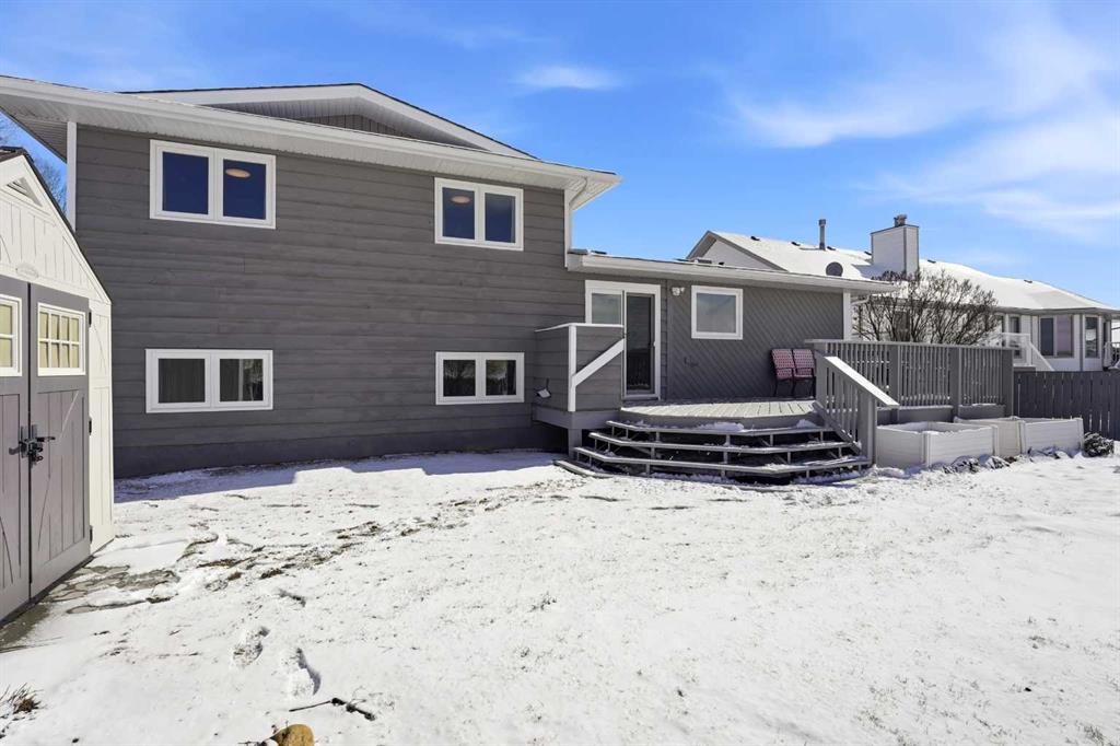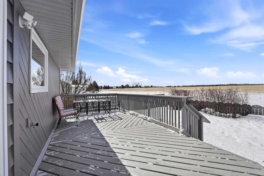 Welcome to this beautifully maintained 4-level split in Didsbury, offering over 1,860+ sq ft of above-grade living space in one of the most desirable locations in town. Backing directly onto open fields with unobstructed views, a walking path just steps away, and located only two doors from the golf course, this property delivers a rare blend of privacy, scenery, and convenience. The exterior showcases timeless cedar siding, complemented by mature landscaping, vibrant perennial flower beds, and established Saskatoon bushes that have produced abundant fruit in recent years. Enjoy peaceful mornings and evening sunsets from the back deck, now enhanced with new railing (2025). Inside, the home has been extensively updated over time. The kitchen features newer countertops and backsplash (2022), while all three bathrooms were fully renovated in 2018, offering modern finishes throughout. Flooring has been completely replaced (2019–2021) with a combination of laminate, luxury vinyl plank, and carpet, along with updated baseboards and LED lighting throughout the home and garage (2019–2023). The functional layout includes a separate entrance to the upper basement (above-grade level)—ideal for guests, extended family, or added flexibility. Major mechanical and exterior updates provide peace of mind, including: Roof, eavestroughs, soffit & fascia (2022), Hot water tank (2021), Windows & doors (majority replaced in 2024; some in 2016), Attic insulation upgraded to current code (2024). Car enthusiasts and hobbyists will love the double attached insulated and heated “dream” garage, complete with a hardwired heater. Additional features include a durable vinyl shed, updated side gate (2025), and ongoing maintenance with various electrical, plumbing, and exterior improvements completed over the years. Appliances have also been upgraded: Maytag dishwasher (2023) and Whirlpool fridge with water/ice (2025). This is a rare opportunity to own a thoughtfully updated home in an unbeatable location—offering space, views, and long-term value.