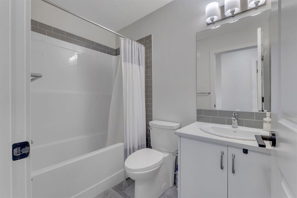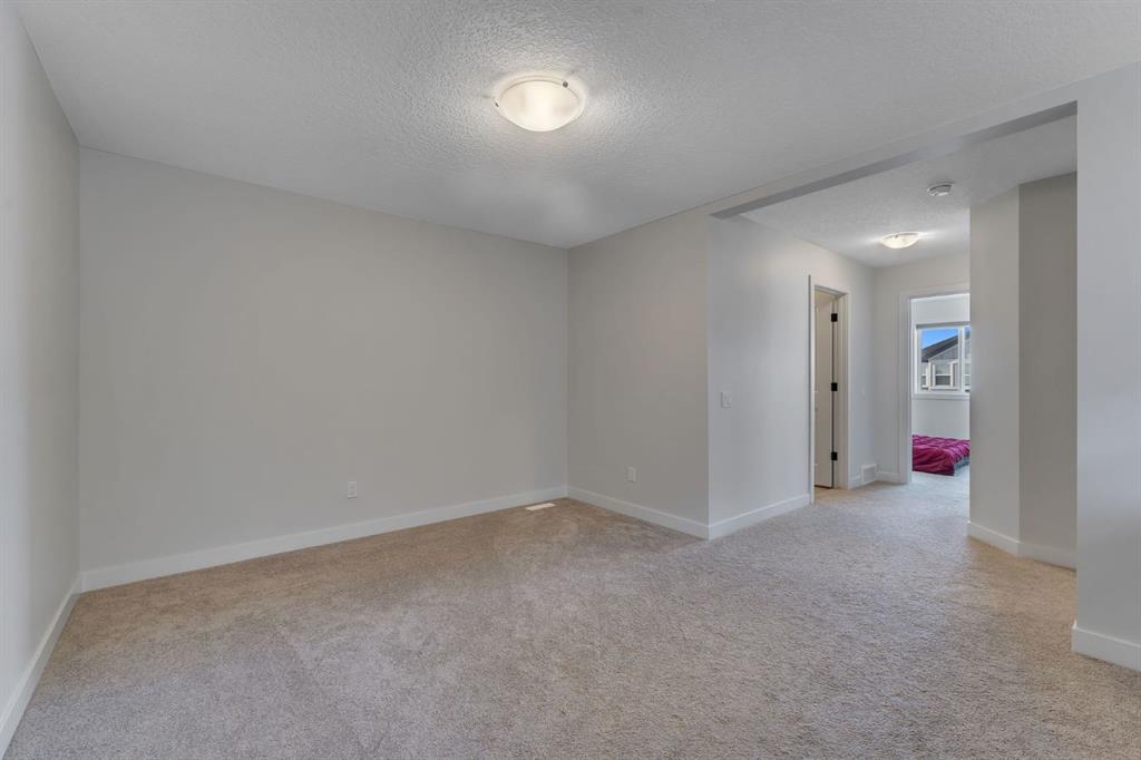 Upstairs, you’ll find three generously sized bedrooms, a spacious bonus family room, and a walk-in laundry room ideally located near the bedrooms. The primary suite serves as a private retreat, featuring a walk-in closet and a 4-piece ensuite with quartz countertops and a tub/shower combination. Two additional bedrooms share a well-appointed 4-piece bathroom. Plush carpeting throughout the upper level adds warmth and comfort.
