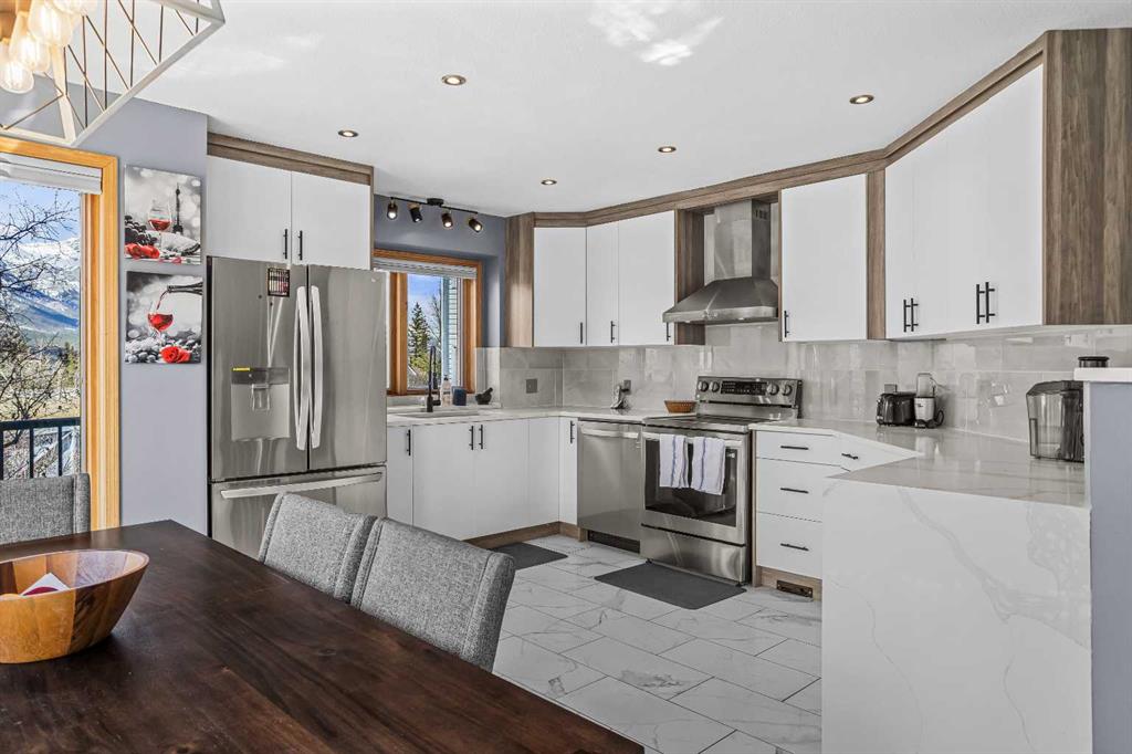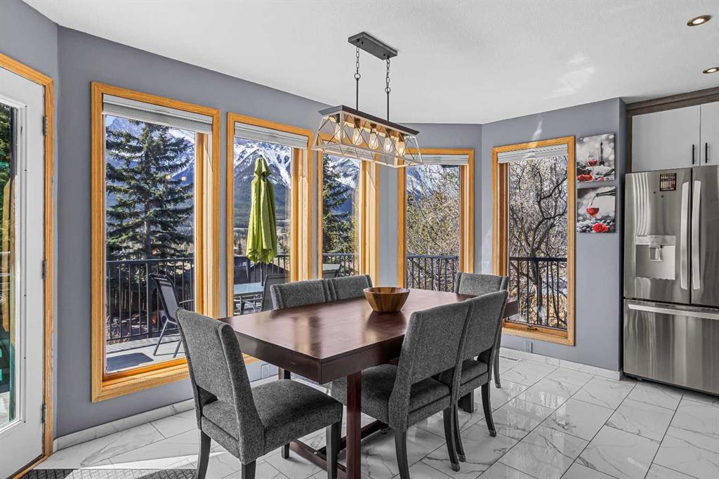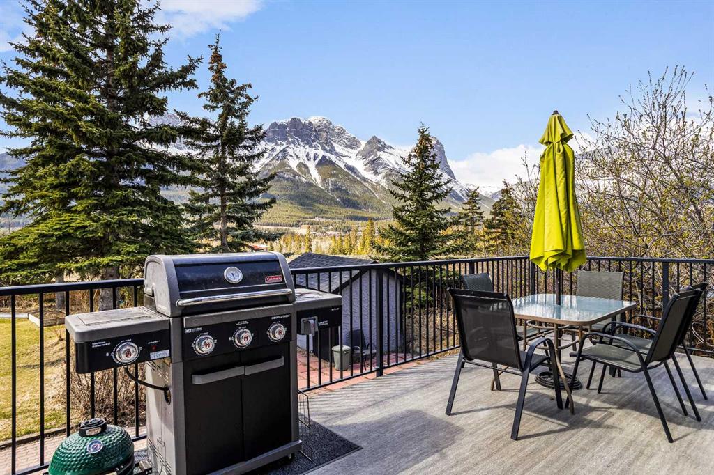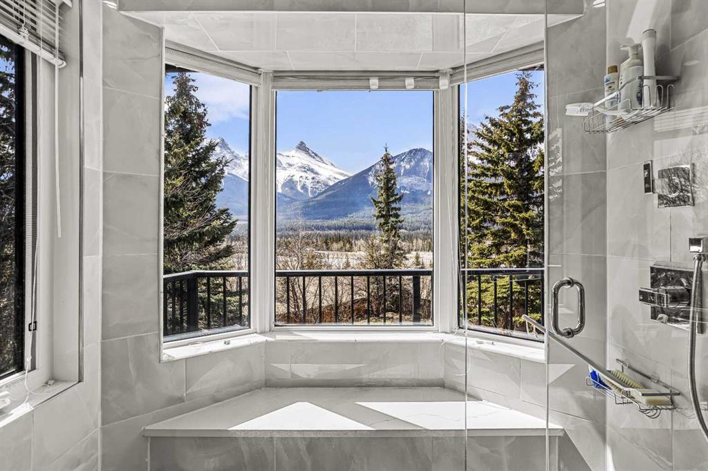 The home offers a functional and flexible layout, including a dedicated home office and a spacious primary suite with a renovated, spa-inspired ensuite. A standout feature is the private balcony off the primary bedroom your own quiet vantage point overlooking the Three Sisters. Additional updated bathrooms throughout the home add to the move-in-ready appeal.