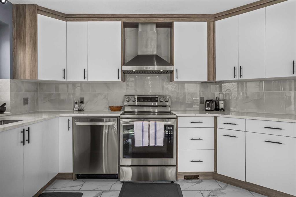 Inside, the home blends modern mountain style with a bright, open-concept layout designed to maximize natural light. The main living area features warm hardwood flooring and flows seamlessly into a beautifully renovated kitchen, complete with updated finishes and thoughtful design for both everyday living and entertaining. Just off the kitchen, a large deck extends the living space outdoors perfect for taking in the surrounding mountain views.