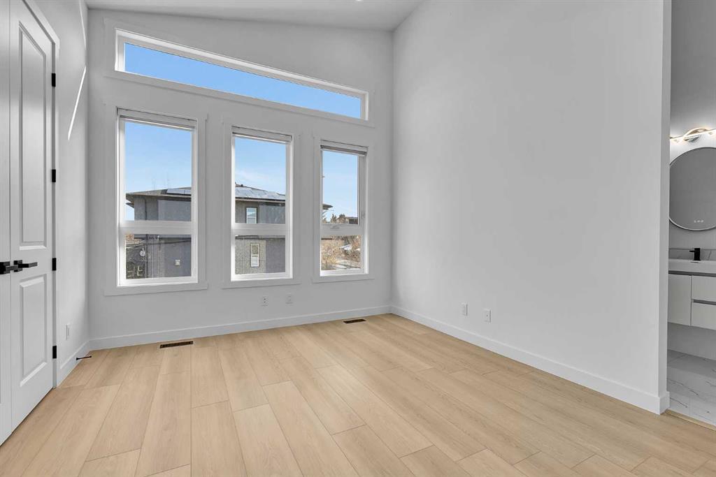 Experience refined inner-city living in this brand new, never-lived-in luxury home in Tuxedo Park, one of the most desirable inner-city communities in Calgary. This modern 2-storey residence offers a total of 3 bedrooms (2+1), 3.5 bathrooms, and 1,131 sq. ft. above grade, plus a fully developed basement — thoughtfully designed for elevated family living and sophisticated entertaining. A single detached garage adds convenience while maintaining the charm of the classic inner-city streetscape. The main floor showcases contemporary architectural design with large windows that flood the space with natural light, waterproof luxury vinyl plank flooring, modern lighting, and an open-concept layout tailored for today’s lifestyle. The living room features a sleek, modern electric fireplace that serves as a stylish focal point while creating a warm, cozy ambiance — perfect for relaxing on cold Calgary winter days. The chef-inspired kitchen features quartz countertops, premium stainless steel appliances, custom cabinetry, and a beautiful eating bar — a stunning focal point for gatherings and everyday luxury. Upstairs, retreat to two spacious bedrooms with vaulted ceilings, creating an airy, upscale ambiance rarely found in new construction homes in Tuxedo Park. Each bedroom offers access to a full bathroom, providing privacy and comfort ideal for professionals, couples, or growing families. The fully developed basement expands your living space with a third bedroom, a full bathroom, and an elegant family room — perfect for guests or a home office. Situated just minutes from downtown Calgary and close to top-rated schools, parks, shopping, transit, and major routes, this exceptional location offers unbeatable access to everything that makes inner-city living truly extraordinary.
