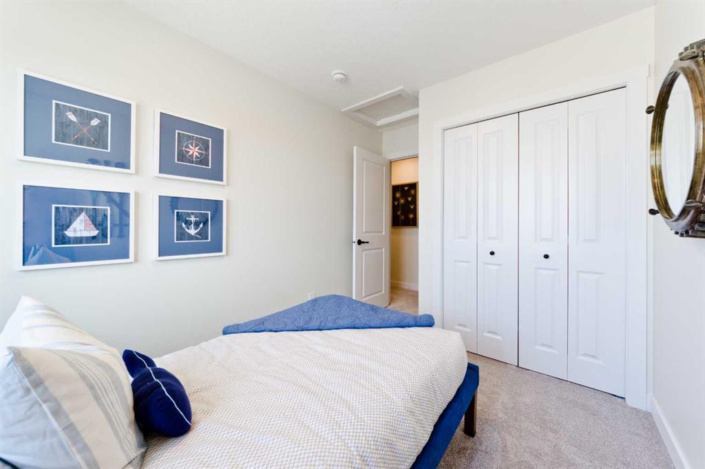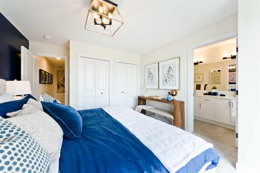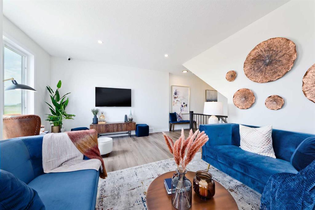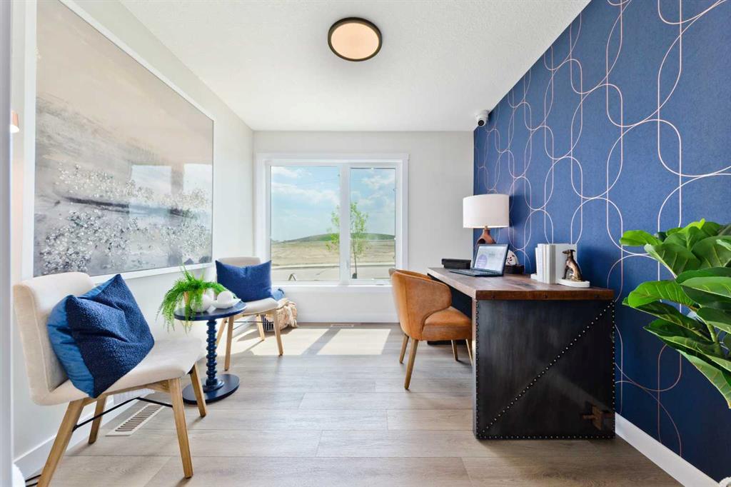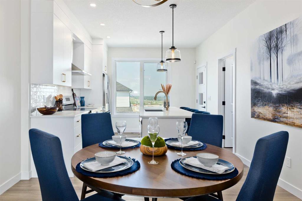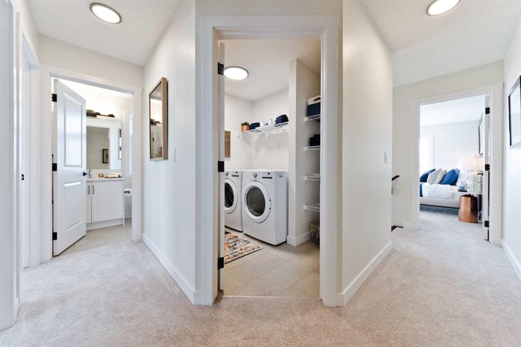 Welcome to this beautifully designed, no-condo-fee townhome in the sought-after Alpine Park community, offering over 1,700 sq ft of functional, well-appointed living space across all levels. The “Alicia” offers 3 bedrooms, 2.5 bathrooms, a main-floor flex space off the double-attached garage, and an additional bonus with an unfinished basement. The main floor features a bright, open-concept layout with a spacious living room that flows seamlessly into the dining area and kitchen. The kitchen features two-toned cabinetry, a large island, a sleek stainless steel appliance package, and a walk-in pantry. Step out onto the private balcony, perfect for morning coffee or summer evenings. A convenient 2-piece bathroom completes this level. Upstairs, you’ll find three bedrooms, including a comfortable primary suite with its own 4-piece ensuite with dual sinks and an oversized shower. Two additional bedrooms, a full bathroom, and upper-floor laundry add practicality and convenience. The entry-level offers a versatile office space ideal for working from home, with access to the attached garage. The undeveloped basement is ready for your design ideas. Alpine Park is designed for connection and lifestyle, featuring beautiful streetscapes, walking paths, parks, and future schools and amenities. With quick access to Stoney Trail and a growing list of nearby conveniences, this community continues to evolve while offering a strong sense of place. Photos are representative and are of the show home which is the same model. RMS has been applied to construction drawings provided by the builder. Taxes to be assessed.