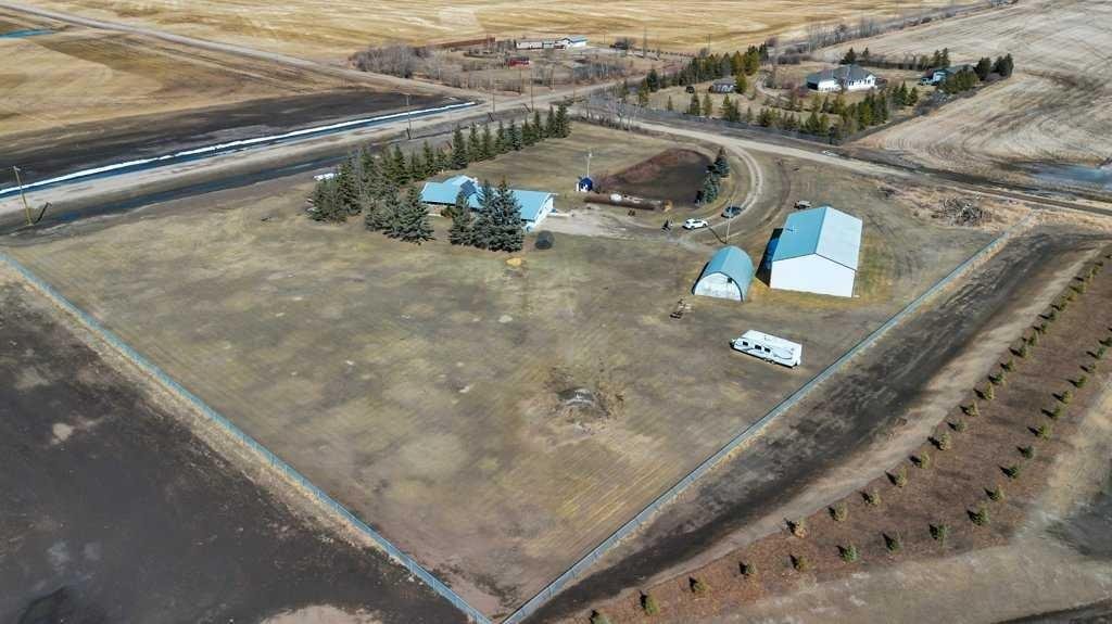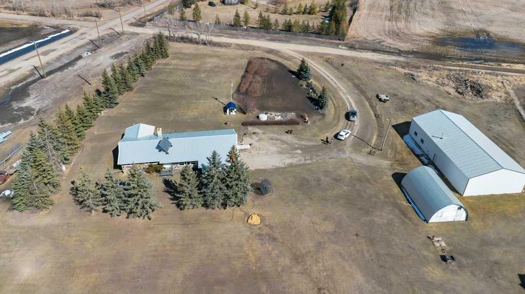 Welcome to your country retreat—where space, function, and opportunity come together on 4.83 beautifully treed acres. This sprawling 2,125 sq ft bungalow, originally built in 1970, offers the kind of layout and solid construction that acreage buyers truly appreciate. Step inside and you’ll immediately notice the warmth and character of the sunken living room, perfectly positioned off the kitchen and dining areas, and framed by stunning floor-to-ceiling windows that flood the space with natural light. The main floor is thoughtfully designed for everyday living, featuring 4 generous bedrooms plus ?space for dedicated office?, (or spare room, storage, gym), 2.5 bathrooms, and the convenience of main floor laundry. Updated vinyl windows and a durable metal roof add peace of mind for years to come. Downstairs, the possibilities are endless—an expansive, unfinished basement (truly massive—think bowling alley size!) includes a separate walk-up entrance, making it ideal for future development, a home-based business, or even multi-generational living. Step outside through double doors off the dining area onto your east-facing deck, the perfect place to enjoy your morning coffee while overlooking your private yard filled with mature trees, established landscaping, and wide-open skies. For those needing serious workspace or storage, this property absolutely delivers: A 40’ x 80’ x 14’ heated shop with in-slab heating and two office spaces—a true showstopper for entrepreneurs, trades, or hobbyists A 35’ x 23’6” Quonset (built in 1983) with concrete floor, water hydrant, and service pit, ideal for cold storage or equipment The yard is set up for both productivity and enjoyment, featuring a large garden, established raspberry bushes, and a small greenhouse. The property is fenced on three sides (with completion planned for summer), offering added security and flexibility for animals or future plans. ?The West Property Line borders the CGC Wallboard Plant – they have added privacy enhancements along the ?south & west property line?s ?including newly planted 6’ trees, and a sound berm. This is more than just an acreage—it’s a lifestyle property with the space, infrastructure, and potential to make your vision a reality.