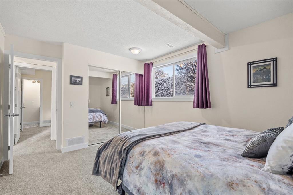 Discover this unique, updated bi-level home tucked away in the highly sought after SW community of Oakridge. A property that truly stands out with the warm, cabin-like feel and inviting atmosphere. From the moment you step inside, you’ll appreciate the character brought to life by the exposed wooden beams, creating a cozy, rustic feel rarely found in the city. This bright and stylish unit has been thoughtfully updated over the past few years, bringing in a mix of modern finishing but yet still holding the charm & character. The main level offers an open and welcoming layout, highlighted by laminate flooring throughout and a large front window that floods the living room with natural light. A wood burning fireplace adds the perfect touch of comfort and ambiance, making this the ideal space to unwind and relax. The updated kitchen is both functional and stylish, offering plenty of counter and cabinet space along with a bright window that overlooks your fully fenced backyard. A perfect view while cooking or entertaining. Adjacent to the kitchen is a dedicated dining area, with direct access to your outdoor space through a convenient side door. Finishing off the main level is a well appointed 4 piece bathroom, completing the convenience and comfort of this upper floor. The lower level has been recently renovated, featuring new carpet, updated baseboards, and fresh paint throughout. This level includes two comfortable bedrooms, along with a convenient 2 piece bath. The primary bedroom offers plenty of space, while the second bedroom is perfect as another bedroom or an ideal home office—enhanced by the added convenience of the half bath. Completing the lower level is a practical utility room with the washer & dryer while offering a generous amount of storage including additional space beneath the stairs. This home has also received several important updates for peace of mind, including a newer electrical panel, hot water tank, roof, and a recently installed air conditioning unit to keep you cool during the summer months. This home also features a fully fenced backyard, perfect for your pets or little ones to safely run around while you entertain guests. Convenience is at your doorstep with your parking stall just steps from the unit, plus plenty of street parking available for visitors. Offering a rare blend of cabin-like charm with urban convenience, this home is minutes from the Glenmore Reservoir, South Glenmore Park, and the Weaselhead Natural Area. Enjoy nature at your doorstep without giving up the daily amenities, with grocery stores, restaurants, the Southland Leisure Centre, schools, and more all close by. A truly unique opportunity for a move-in ready home located in Oakridge!