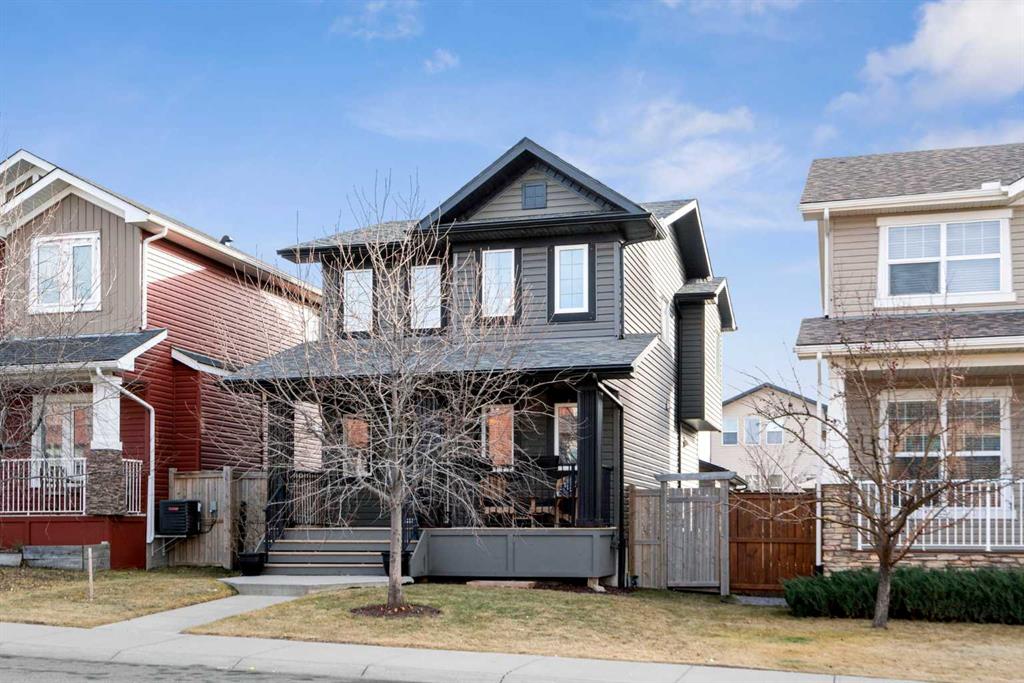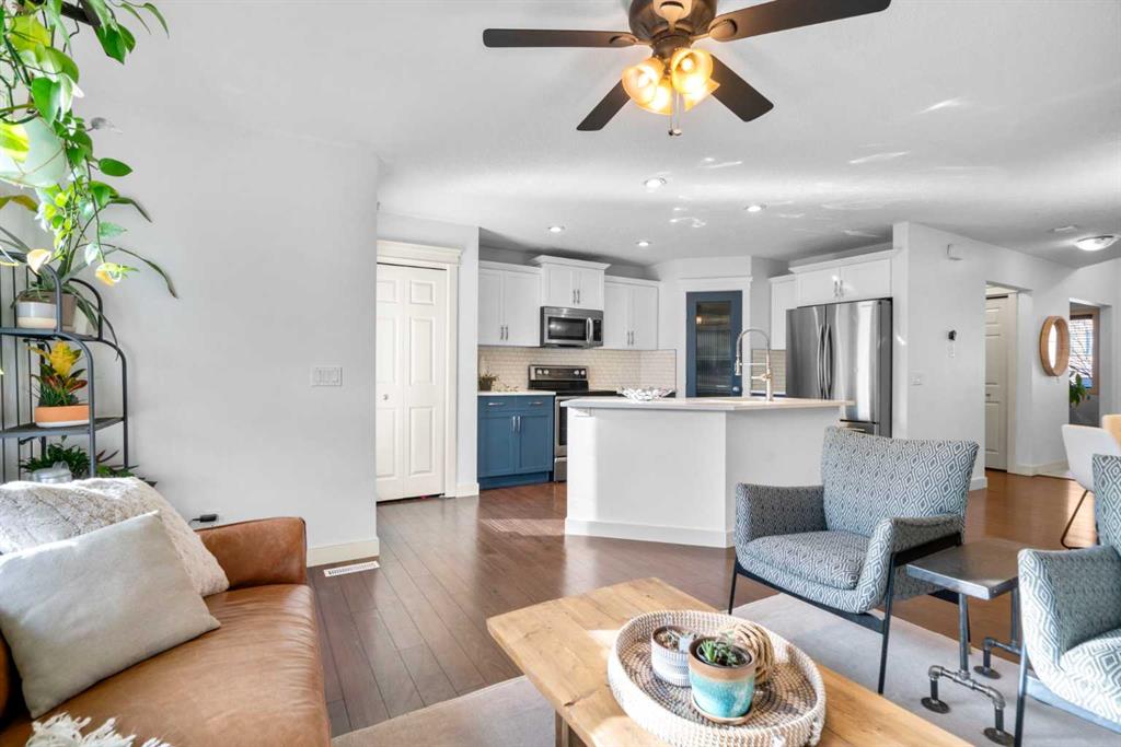 Welcome to 263 Evanston Way NW, ideally located across from a school and green space in one of Evanston’s most family-friendly pockets. This well-maintained home offers over 2,200 sq ft of developed living space across three finished levels, with thoughtful upgrades throughout. The covered front porch leads into a bright foyer, with a private front OFFICE ideal for working from home. Main-floor laundry and a convenient powder room add everyday functionality. The open-concept main living area features a recently updated kitchen with QUARTZ countertops, two-toned cabinetry (white uppers with blue lowers and island), STAINLESS STEEL APPLIANCES, and a generous pantry. The kitchen flows seamlessly into the dining area and rear living room, anchored by a GAS FIREPLACE and large windows overlooking the beautifully landscaped backyard. Outside, enjoy a two-tiered deck with pergola, perfect for entertaining or relaxing, plus the added benefit of a heated detached garage for year-round use. Upstairs, the spacious primary bedroom includes a walk-in closet and a well-appointed ensuite with soaker tub and separate shower. Two additional bedrooms with newer triple-pane windows, a full bathroom, and an open-to-below landing complete the upper level. The FULLY DEVELOPED BASEMENT offers a large rec room with WET BAR, a fourth bedroom, and a full bathroom – ideal for guests, teens, or extended family. This level also includes an organized utility space, ample storage, and a BRAND NEW HOT WATER TANK. Recent updates include new siding, new roof shingles, updated kitchen finishes, and CENTRAL AIR CONDITIONING, offering move-in-ready peace of mind. Located in the heart of Evanston, this home provides easy access to schools, parks, pathways, shopping, and major commuter routes. A well-rounded property offering plenty of space, functionality, and a strong community setting. Book your private showing today!