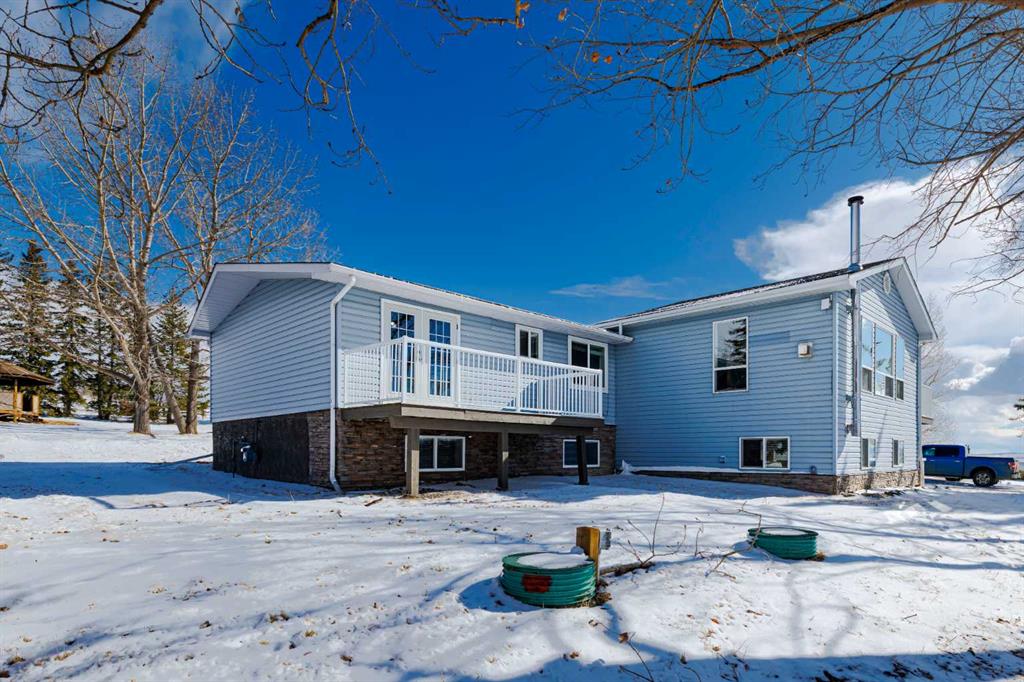 Welcome to an exceptional acreage opportunity offering space, privacy & breathtaking scenery.This beautifully renovated walkout bungalow sits on 8.06 picturesque acres & captures stunning, unobstructed mountain views right from every level of the home. Whether you’re looking for a peaceful country retreat, space for animals, or room for your family to grow, this property offers the perfect blend of comfort, functionality & rural charm. Inside, the home features 6 spacious bedrooms & a thoughtfully updated interior designed for modern living while embracing the warmth of country life. The kitchen speaks for itself with a massive island, quartz counters, tons of cabinetry, pantry & a coffee station area, This kitchen effortlessly blends highend modern utility with the rugged, organic textures of a mountain retreat. The open-concept design is defined by its crisp white cabinetry, dark stone surfaces, and a striking floor-to-ceiling fieldstone feature wall. All the bathrooms have been updated & in convenient locations. Large windows fill the home with natural light &perfectly frame the sweeping mountain views, creating a bright & inviting atmosphere throughout the main living areas. 3 cozy fireplaces bring ambience to every level of this home. 2 wood burning fireplaces and one natural gas fireplace. The layout offers both comfortable everyday living & plenty of space for entertaining family and friends. There are 3 decks to enjoy the outdoor life and views. The walk-out basement provides additional versatile living space with direct access to the outdoors, making it ideal for gatherings, extended family living, a recreation area, media room & a private retreat for guests. With multiple living spaces and generous bedroom sizes, the home offers flexibility to suit a variety of lifestyles. Step outside and experience the true beauty of acreage living. The 8.06-acre parcel offers wide open space, privacy & endless potential for outdoor enjoyment. The property has been home to cows, donkeys & chickens, making it well suited for hobby farming or those who appreciate the charm & rewards of rural life. There’s a 20x50ft fenced grazing area, garden area, and additional outbuildings. Imagine starting your mornings with coffee while watching the sunrise over the mountains & ending your evenings under expansive prairie skies. With incredible views, room for animals & a beautifully updated home already in place, this property offers a rare opportunity to enjoy the best of country living while still being within reach of nearby amenities. Acreage properties like this are increasingly hard to find offering the perfect combination of land, views & a move-in-ready home. Whether you’re dreaming of a hobby farm, a private family retreat, or simply more space to live and breathe, this remarkable property delivers a lifestyle that is truly special. Roof 15 years old, septic field/tank 2022, furnace 2023, H2O tank 2025