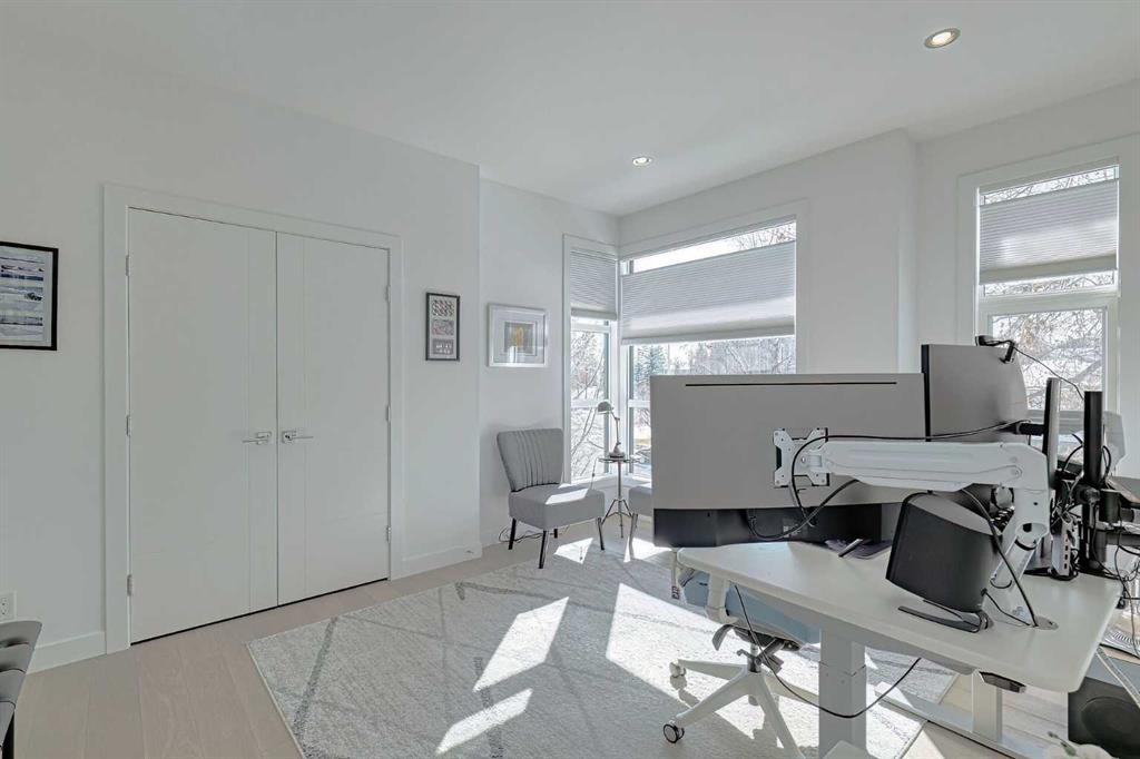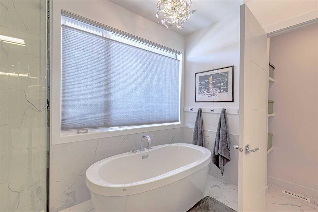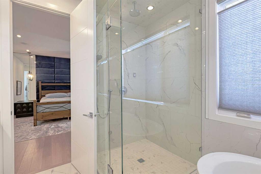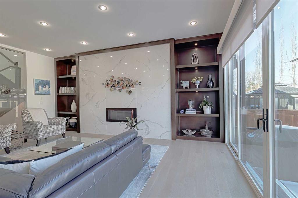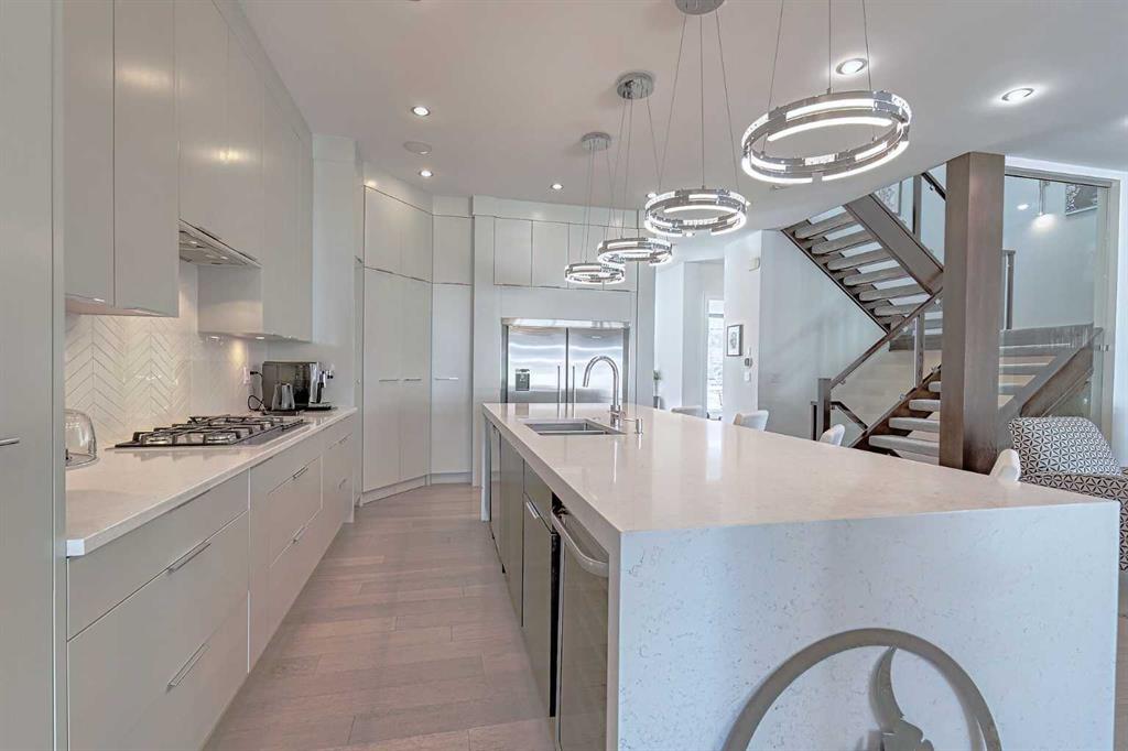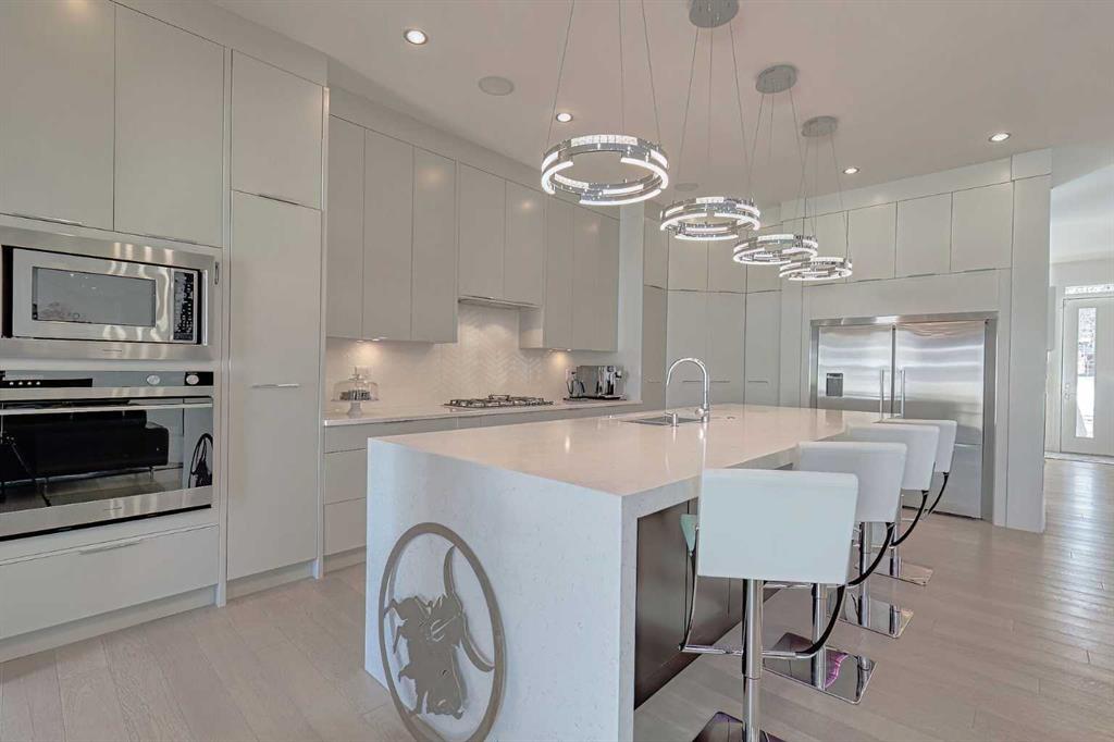 IT’S A LIFESTYLE !! Picture a life where you wake up in a quiet, tree lined SW inner-city neighbourhood, grab a coffee, drive out of your RARE TRIPLE CAR GARAGE and be downtown in minutes. Live the dream in your luxurious modern home and enjoy fun-filled evenings with family and friends in a showpiece GOURMET KITCHEN designed for real cooks. The kitchen features DELUXE FISHER PAYKEL APPLIANCES including gas cooktop, wall oven and a quiet MIELE DISHWASHER. Note the hidden corner pantry, extra rolling storage and spice racks, and even more storage in the covert cabinets at the front of the island, lit by multi-coloured led lighting. Imagine laughter echoing through soaring 10’ CEILINGS, and natural sunlight pouring into the OVERSIZED WINDOWS. The upper level with THREE SPACIOUS BEDROOMS includes a relaxing primary bedroom retreat sensibly designed with his and hers walk-in closets. After a tough work week envision finally relaxing in your king sized bed with tufted blue velvet wall and designer pendant lights or unwinding in the SPA-INSPIRED ENSUITE that feels like a boutique hotel… comes with a freestanding soaker tub, European tiled shower and dual sinks. Also on this floor is a spacious laundry room, and I nearly forgot to mention that the second bedroom has its own walk in closet! So many CUSTOM UPGRADES – lighting, plumbing, built in speakers, an entire home automation system with motion sensors and for ease of life, all the louvres and roller blinds are automated with their own remotes (Lucenti automated roller blinds in the great room) , a mudroom with built in storage, hot tub rough in, etc. This Killarney gem is beautifully built with 10’ ceilings that create an airy, open feel, has wide-plank hardwood throughout, custom cabinetry, a massive island for your creative baking pleasure, a great room that brings people together and features a tile surround showcase fireplace. AND the large dining room with stunning floor to ceiling built-in shelving is a show stopper. A large FOURTH BEDROOM and THREE PIECE BATHROOM complete the FULLY DEVELOPED BASEMENT. Imagine movie nights in your own private media lounge where you might also host guests with a wine or whiskey tasting at your fancy wet bar, a lower level made for memories. Check out the garage with new, cutting edge steel cabinets and polyaspartic flooring (tough as nails, but breaths better than epoxy). A fabulous, private back yard with Artificial turf gives you a near entirely MAINTENANCE FREE FRONT and BACK YARD with ALUMINUM PRIVACY SCREEN and lots of space for your patio furniture and outdoor fire pit. There are plenty of entertaining areas inside and outside this opulent home. Minutes to downtown, transit, parks, amenities and the Shaganappi Golf Course; golf in summer or cross country ski and snow shoe in winter. The Killarney Aquatic Recreation Centre is also just blocks away. This magnificent detached home blends contemporary design with everyday comfort – where modern luxury meets everyday ease.