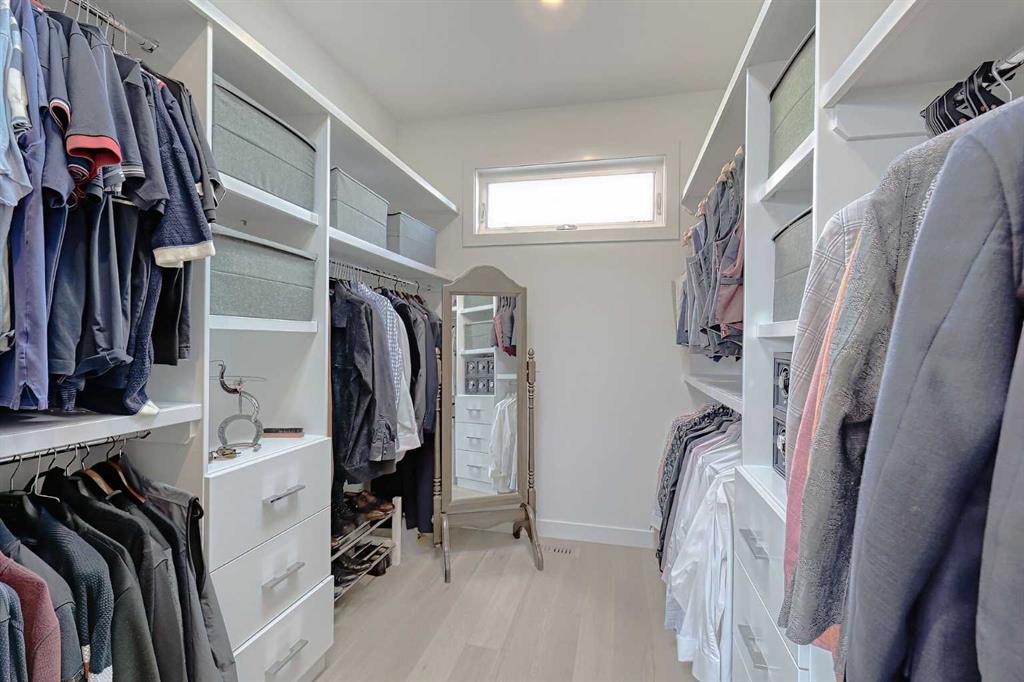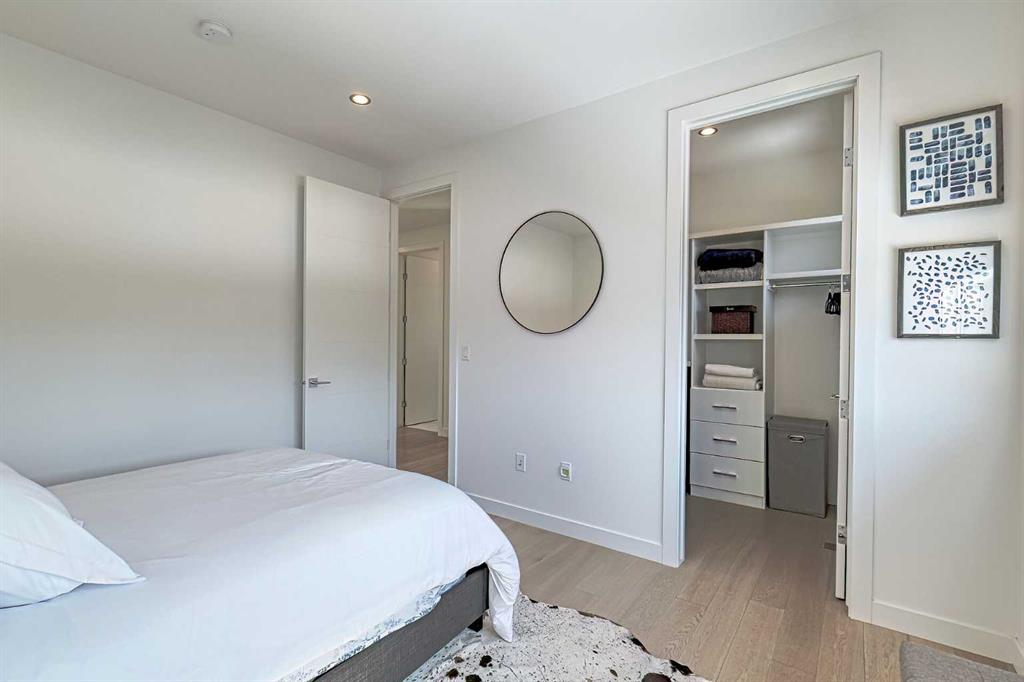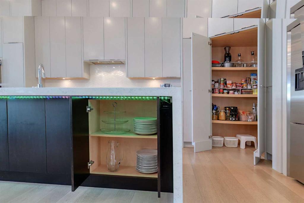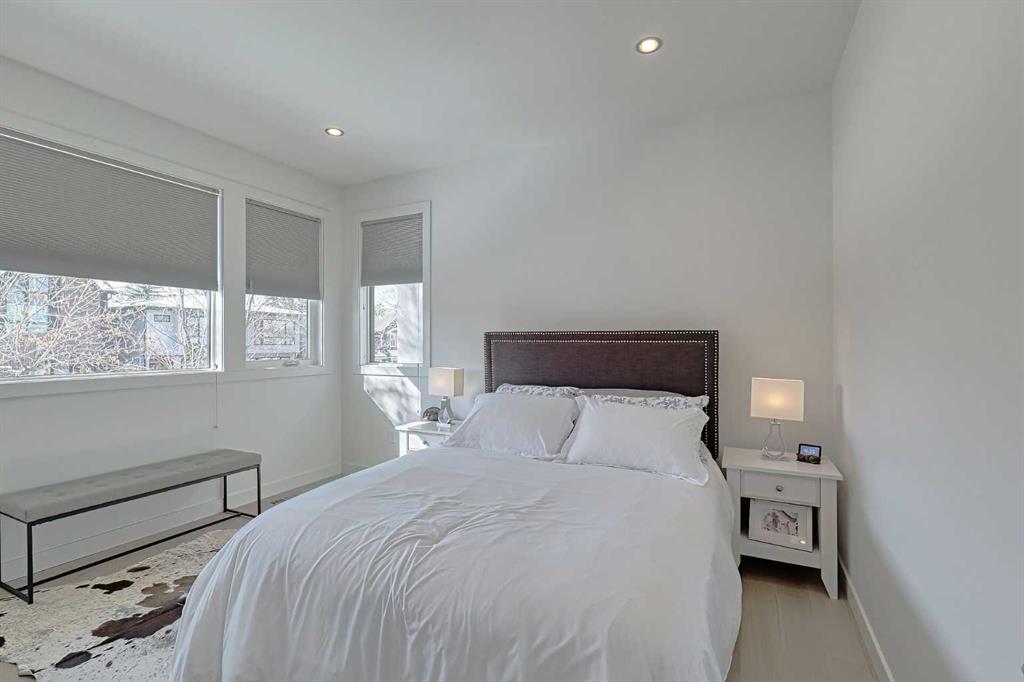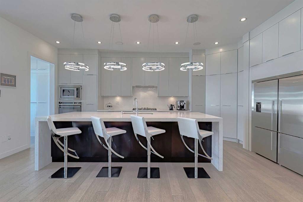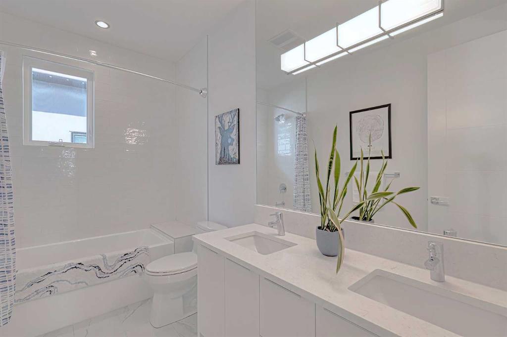 IT’S A LIFESTYLE !! Picture a life where you wake up in a quiet, tree lined SW inner-city neighbourhood, grab a coffee, drive out of your RARE TRIPLE CAR GARAGE and be downtown in minutes. Live the dream in your luxurious modern home and enjoy fun-filled evenings with family and friends in a showpiece GOURMET KITCHEN designed for real cooks. The kitchen features DELUXE FISHER PAYKEL APPLIANCES including gas cooktop, wall oven and a quiet MIELE DISHWASHER. Note the hidden corner pantry, extra rolling storage and spice racks, and even more storage in the covert cabinets at the front of the island, lit by multi-coloured led lighting. Imagine laughter echoing through soaring 10’ CEILINGS, and natural sunlight pouring into the OVERSIZED WINDOWS. The upper level with THREE SPACIOUS BEDROOMS includes a relaxing primary bedroom retreat sensibly designed with his and hers walk-in closets. After a tough work week envision finally relaxing in your king sized bed with tufted blue velvet wall and designer pendant lights or unwinding in the SPA-INSPIRED ENSUITE that feels like a boutique hotel… comes with a freestanding soaker tub, European tiled shower and dual sinks. Also on this floor is a spacious laundry room, and I nearly forgot to mention that the second bedroom has its own walk in closet! So many CUSTOM UPGRADES – lighting, plumbing, built in speakers, an entire home automation system with motion sensors and for ease of life, all the louvres and roller blinds are automated with their own remotes (Lucenti automated roller blinds in the great room) , a mudroom with built in storage, hot tub rough in, etc. This Killarney gem is beautifully built with 10’ ceilings that create an airy, open feel, has wide-plank hardwood throughout, custom cabinetry, a massive island for your creative baking pleasure, a great room that brings people together and features a tile surround showcase fireplace. AND the large dining room with stunning floor to ceiling built-in shelving is a show stopper. A large FOURTH BEDROOM and THREE PIECE BATHROOM complete the FULLY DEVELOPED BASEMENT. Imagine movie nights in your own private media lounge where you might also host guests with a wine or whiskey tasting at your fancy wet bar, a lower level made for memories. Check out the garage with new, cutting edge steel cabinets and polyaspartic flooring (tough as nails, but breaths better than epoxy). A fabulous, private back yard with Artificial turf gives you a near entirely MAINTENANCE FREE FRONT and BACK YARD with ALUMINUM PRIVACY SCREEN and lots of space for your patio furniture and outdoor fire pit. There are plenty of entertaining areas inside and outside this opulent home. Minutes to downtown, transit, parks, amenities and the Shaganappi Golf Course; golf in summer or cross country ski and snow shoe in winter. The Killarney Aquatic Recreation Centre is also just blocks away. This magnificent detached home blends contemporary design with everyday comfort – where modern luxury meets everyday ease.