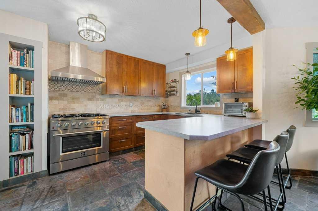 Welcome to this remarkable 24-acre hobby farm tucked away on a private road along the WID Canal, perfectly blending country living with modern comfort and ideal for horse enthusiasts, hobby farmers, or anyone seeking a lifestyle defined by space, privacy, and connection to the land. Horse lovers will appreciate the impressive 38’ x 30’ barn complete with power, five stalls, a tack and feed room with water hydrant, and a spacious loft, plus a large equipment storage shed, while the land is thoughtfully divided into multiple paddocks with auto water and barbless wire for safe and efficient livestock management. The extensively renovated home is filled with natural light and designed for both comfort and style, featuring a spacious living room with fireplace, a large dining area, and a chef-inspired kitchen equipped with a six-burner gas stove, stainless steel appliances, eating bar, and pantry, along with a convenient mudroom/laundry combination and two-piece bath on the main level. Upstairs offers a retreat-like primary suite with ensuite bath, two additional bedrooms, a sitting area, and a fully renovated main bathroom, while the lower level provides added flexibility with a large recreation room, office, and generous storage. Updates include slate flooring on the main level, luxury vinyl plank throughout the upper and lower levels, new siding and shingles (2017), and an attached double garage. Outside, enjoy your own private paradise on 1.5 landscaped acres where mature trees frame a stone patio, hot tub, and pergolas—an ideal setting for relaxing or entertaining—and don’t miss the insulated “chicken palace” that adds charm and character to this truly special property offering the tranquility, space, and lifestyle of country living at its finest.