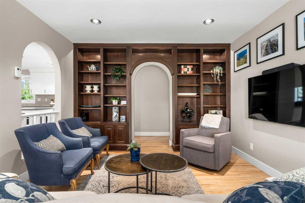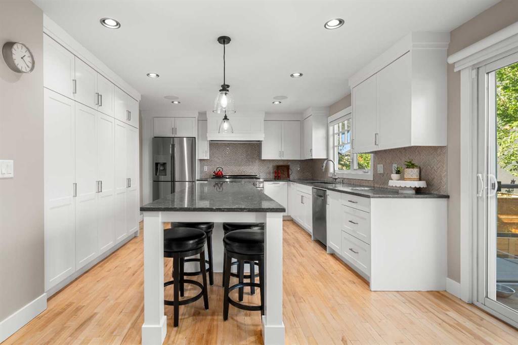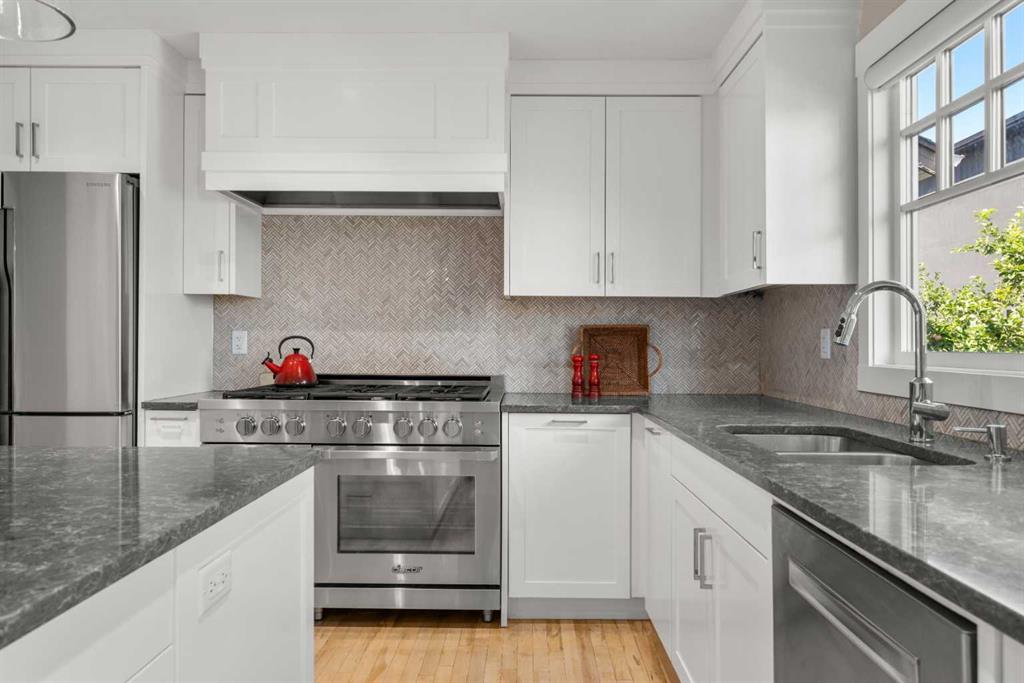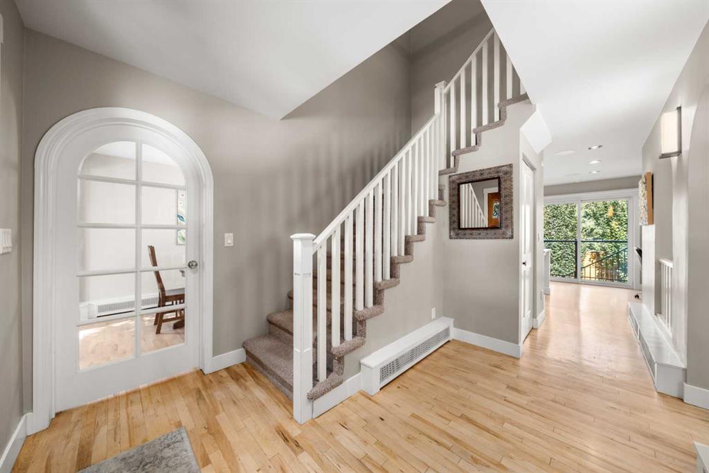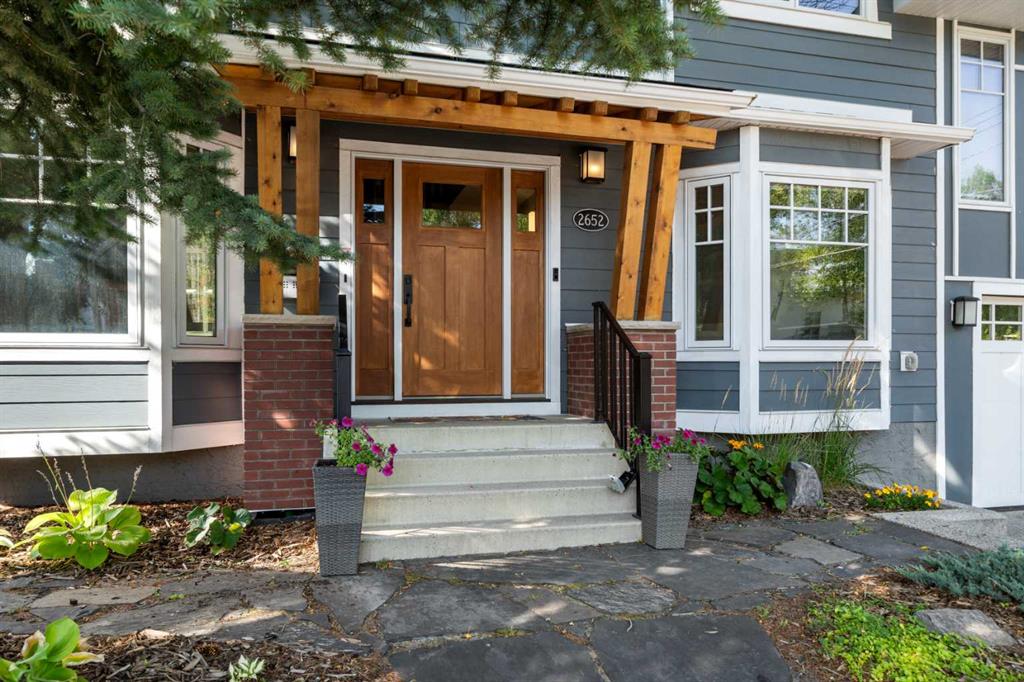 Welcome to 2652 14th Ave SW, a beautifully updated 2-storey single-family home, ideally located in the sought-after neighbourhood of Shaganappi. Offering the convenience of inner-city living AND the peace and quiet of a mature neighbourhood, this home is close to neighbourhood schools, parks, walking paths and the shops and restaurants of 17th Ave. With easy access to the LRT and only five minutes to downtown, this location is the perfect choice for a growing family or busy professionals. Extensively renovated in 2017, this spacious and move-in-ready home exudes charm and modern elegance, with thoughtful design details in every room. Step inside to discover stunning refinished hardwood floors throughout the main level, an inviting foyer and generous south-facing living room with custom built-in bookcases and beautiful archways. The spacious dining room leads into the fully renovated chef-inspired kitchen with top-of-the-line SS appliances, including a six-burner oversized gas stove, ceiling-height custom cabinetry, and a large central island with sleek Caesarstone countertop. Multiple windows flood the space with light and direct access to the backyard along with the work/organization area is ideal for family life. A large back entry space with storage leading to the insulated single garage, and an updated 2-piece powder room, complete the main level. Upstairs you will find three generously sized bedrooms, including the primary suite with both a walk-in closet and custom-built wardrobes, and beautifully updated ensuite with new flooring, vanity, lighting and separate shower. Throughout the home new windows, trim, interior doors, paint, custom radiator covers and flooring contribute to the home’s modern aesthetic. The ‘back’ staircase leads to a bright upper family room, featuring a newer custom fireplace, expansive built-in shelves, vaulted ceilings, wet bar and east-facing balcony – ideal for enjoying your morning coffee and peace of the neighbourhood. The fully finished lower level offers a fourth bedroom with updated 3pc bathroom, large rec/games room, laundry room with newer washer, dryer and sink, and additional storage. The private backyard has been thoughtfully designed for family fun. Enjoy the pressed concrete patio, low maintenance landscaping with a unique paving stone area for outdoor games and numerous trees and shrubs, a stylish two-level garden shed for extra storage, newer fence and hot tub. This home has been thoughtfully updated with a long list of renovations, including new windows, new flooring, entire home painted, new Hardieboard siding and exterior trim, new kitchen and bathrooms, new lighting, and so much more – be sure to review the full list of updates! Located across from a great elementary school, just one block from the LRT station and Shaganappi golf course and a short drive to downtown, the location is perfect! Homes like this do not come on the market very often – do not miss out!