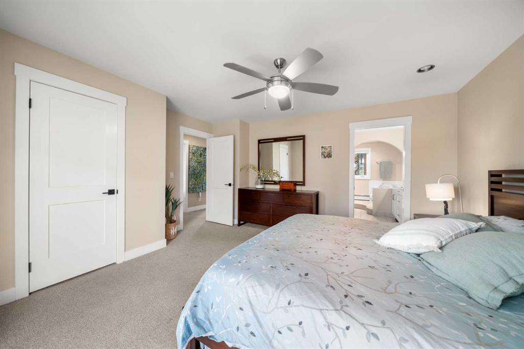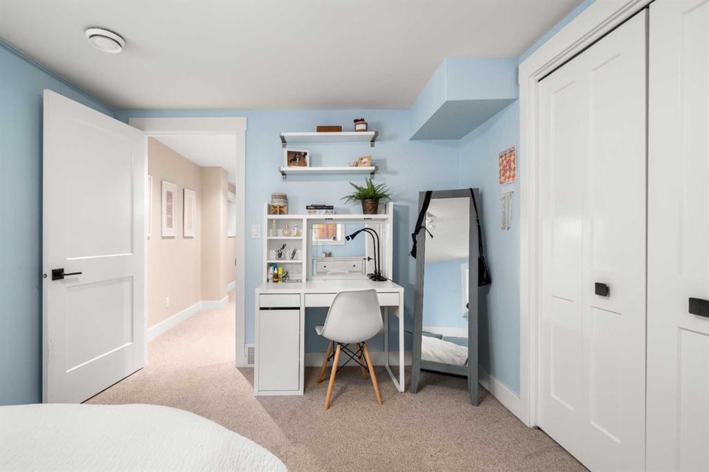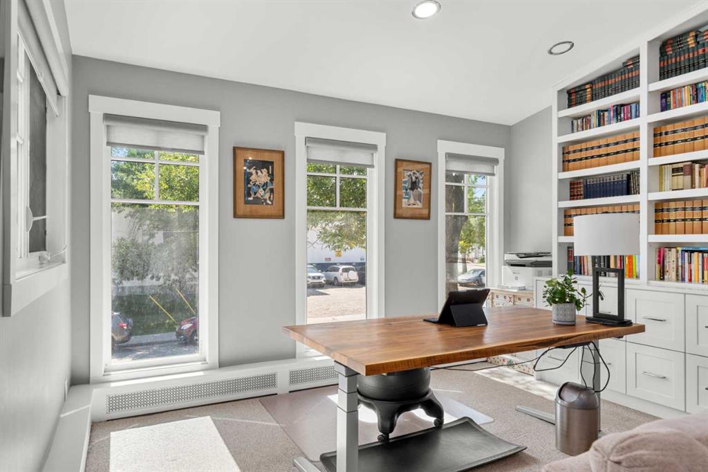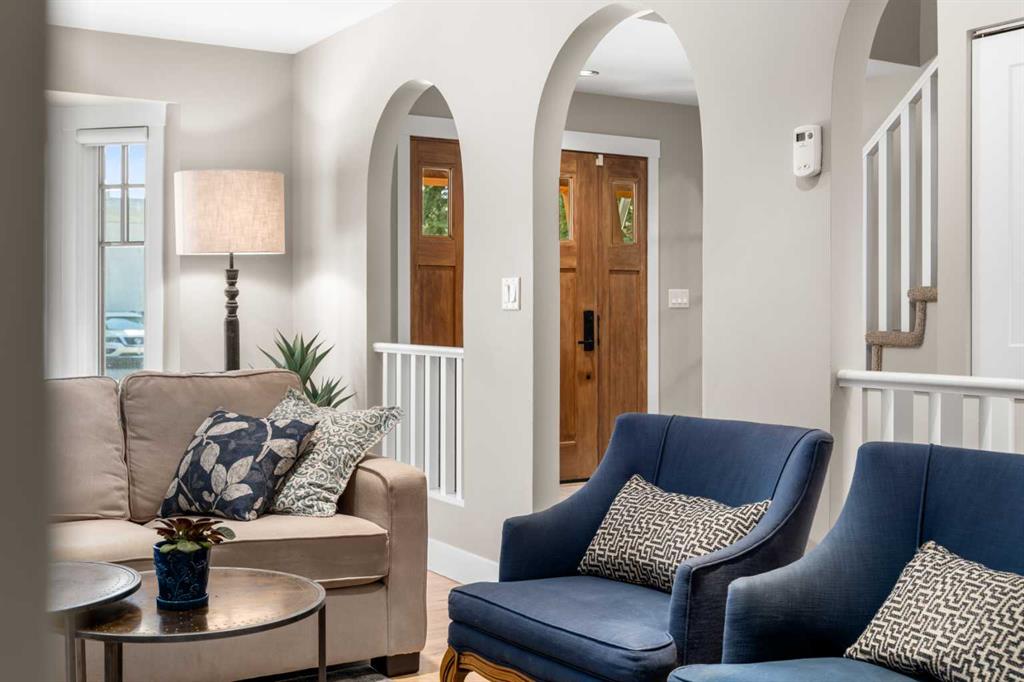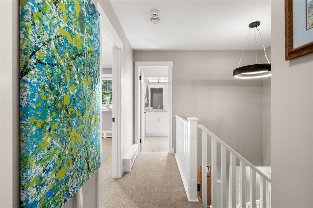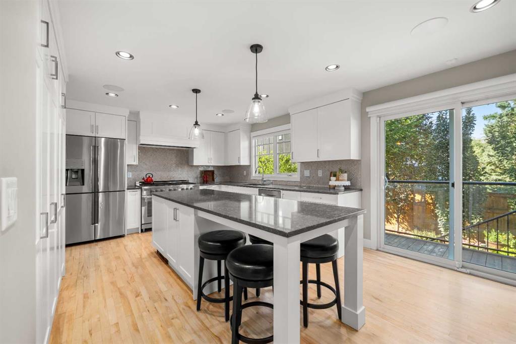 Welcome to 2652 14th Ave SW, a beautifully updated 2-storey single-family home, ideally located in the sought-after neighbourhood of Shaganappi. Offering the convenience of inner-city living AND the peace and quiet of a mature neighbourhood, this home is close to neighbourhood schools, parks, walking paths and the shops and restaurants of 17th Ave. With easy access to the LRT and only five minutes to downtown, this location is the perfect choice for a growing family or busy professionals. Extensively renovated in 2017, this spacious and move-in-ready home exudes charm and modern elegance, with thoughtful design details in every room. Step inside to discover stunning refinished hardwood floors throughout the main level, an inviting foyer and generous south-facing living room with custom built-in bookcases and beautiful archways. The spacious dining room leads into the fully renovated chef-inspired kitchen with top-of-the-line SS appliances, including a six-burner oversized gas stove, ceiling-height custom cabinetry, and a large central island with sleek Caesarstone countertop. Multiple windows flood the space with light and direct access to the backyard along with the work/organization area is ideal for family life. A large back entry space with storage leading to the insulated single garage, and an updated 2-piece powder room, complete the main level. Upstairs you will find three generously sized bedrooms, including the primary suite with both a walk-in closet and custom-built wardrobes, and beautifully updated ensuite with new flooring, vanity, lighting and separate shower. Throughout the home new windows, trim, interior doors, paint, custom radiator covers and flooring contribute to the home’s modern aesthetic. The ‘back’ staircase leads to a bright upper family room, featuring a newer custom fireplace, expansive built-in shelves, vaulted ceilings, wet bar and east-facing balcony – ideal for enjoying your morning coffee and peace of the neighbourhood. The fully finished lower level offers a fourth bedroom with updated 3pc bathroom, large rec/games room, laundry room with newer washer, dryer and sink, and additional storage. The private backyard has been thoughtfully designed for family fun. Enjoy the pressed concrete patio, low maintenance landscaping with a unique paving stone area for outdoor games and numerous trees and shrubs, a stylish two-level garden shed for extra storage, newer fence and hot tub. This home has been thoughtfully updated with a long list of renovations, including new windows, new flooring, entire home painted, new Hardieboard siding and exterior trim, new kitchen and bathrooms, new lighting, and so much more – be sure to review the full list of updates! Located across from a great elementary school, just one block from the LRT station and Shaganappi golf course and a short drive to downtown, the location is perfect! Homes like this do not come on the market very often – do not miss out!