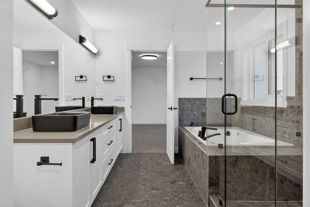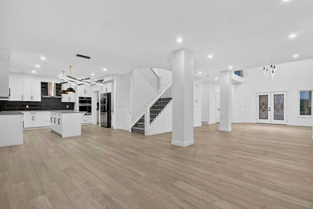Stunning Brand-New Luxury Home in Chestermere | 5 Beds + Triple Garage | Park-Facing Corner Lot. Welcome to this spacious, beautifully crafted brand-new home located in one of Chestermere’s highly sought-after lake communities, where resort-style amenities meet everyday convenience. Set on a premium corner lot backing onto a park, this property offers exceptional space, high-end finishings, and thoughtful design throughout. Step inside to soaring open-to-above ceilings, elegant chandeliers, and a bright, airy layout that blends luxury with comfort. The main floor features a bedroom with its own private en suite, ideal for guests, extended family, or multigenerational living.