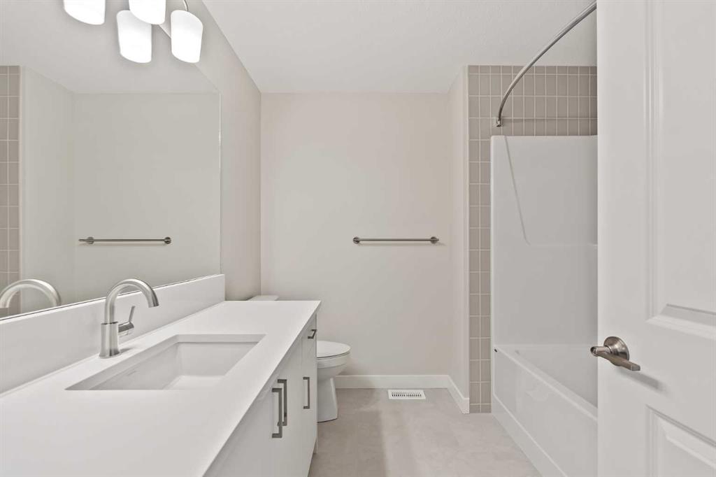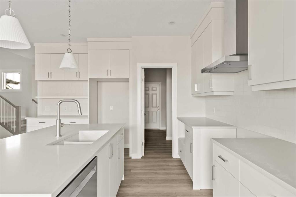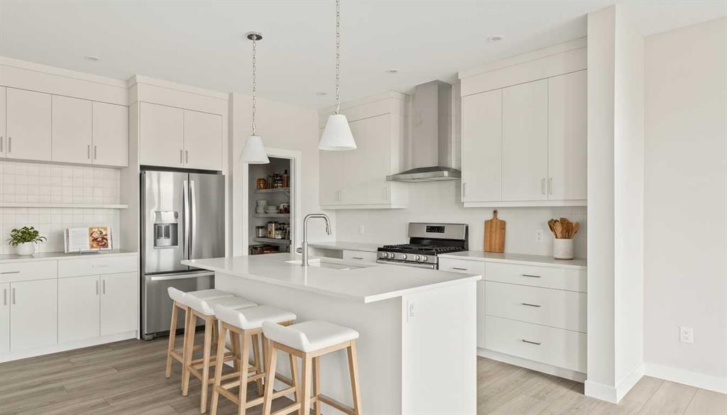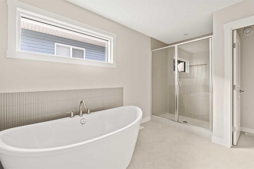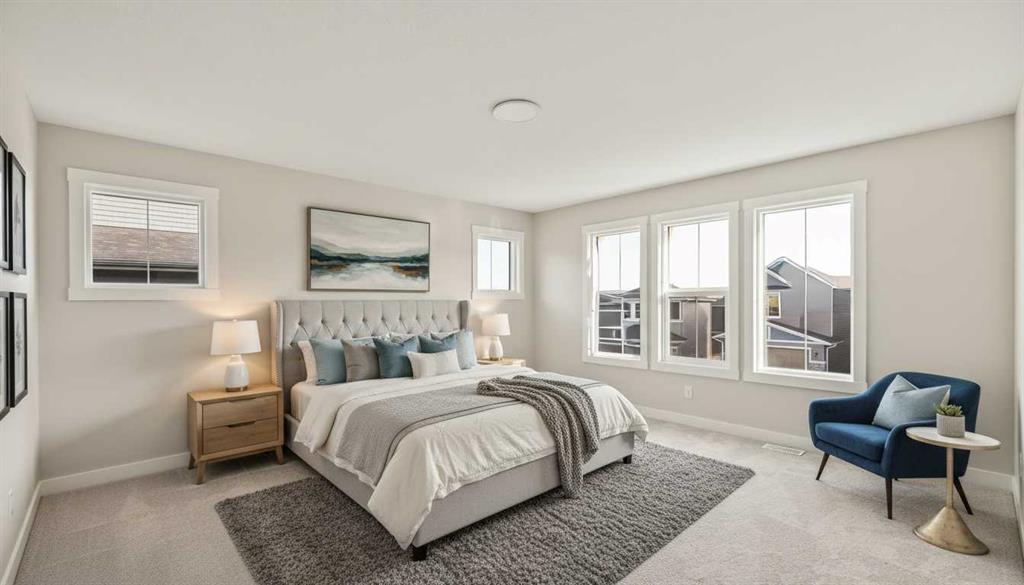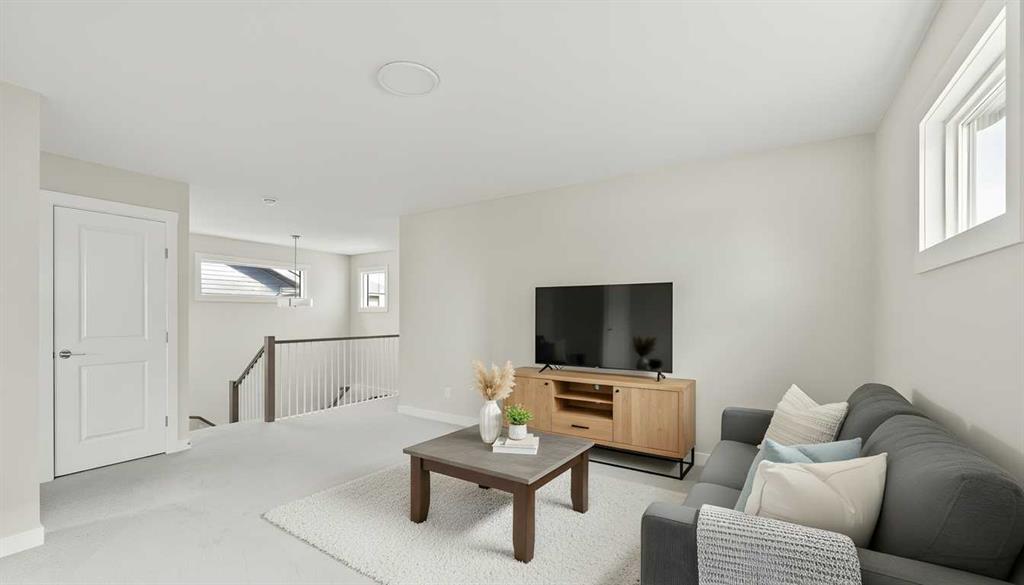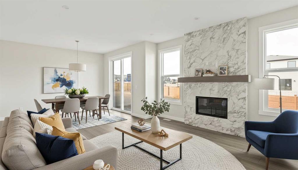 Introducing the Purcell 26 in Livingston – a beautifully curated, move-in-ready home that blends thoughtful design with everyday functionality. Professionally styled with timeless finishes and elevated details, this residence offers versatility for growing families, multigenerational households or investors seeking a polished, turnkey property. With 2,425 sq. ft. of developed living space, the layout provides a flex room, two distinct living areas, three bedrooms, 2.5 bathrooms and an undeveloped basement awaiting your vision. Luxury Vinyl Plank flooring stretches across the main level, setting the tone for a durable yet refined interior. At the heart of the home is a striking kitchen complete with a built-in range hood, island microwave, quartz island and upgraded custom lighting. A full walk-through pantry connects seamlessly to an oversized mudroom, adding everyday convenience and storage. The dining and living spaces span the rear of the home, framed by expansive windows that invite natural light throughout the day. A central gas fireplace with a tiled surround is flanked by symmetrical windows, creating a beautifully balanced focal point. A grand front foyer, dual closets and a 2-pc powder room complete the level. The staircase, finished with natural wood and iron railing, leads to an upper level designed for separation and comfort. A central bonus room sits between the secondary bedrooms and the private primary retreat. The primary suite features generous windows for plenty of natural light, along with a spa-inspired ensuite offering a tiled walk-in shower, a soaker tub, dual vanities and a private water closet. Two additional bedrooms, a 4-pc bathroom and a laundry room with counter space complete the upper floor. A separate side entrance provides direct access to the basement, making it well suited for future development. This brand-new property is move-in ready and includes Alberta New Home Warranty, giving you confidence and peace of mind as you settle into your new home. A rare opportunity to own a beautifully designed Purcell 26—crafted for comfort, style and long-term living.