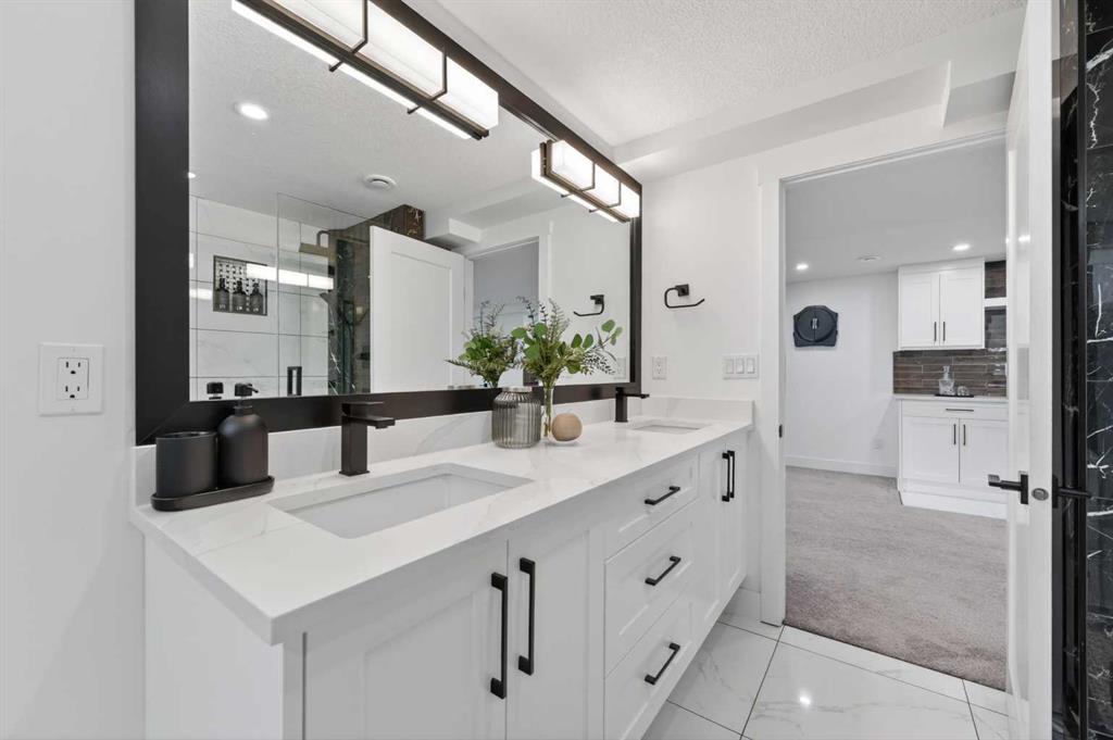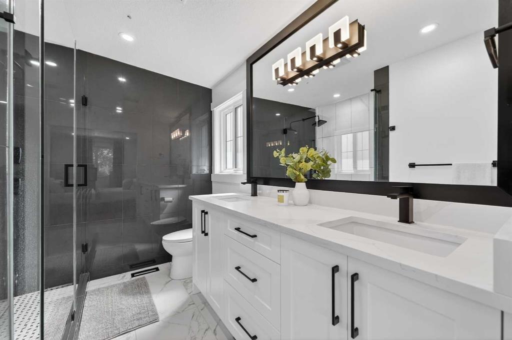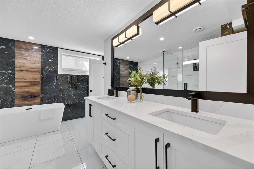 The main floor also boasts gorgeous hardwood flooring and feature walls throughout. Enter the luxurious primary suite complete with a walk-in closet and a spa-like ensuite boasting dual vanities and an impressive freestanding shower. Two additional well-sized bedrooms and a beautifully appointed 4-piece bathroom complete the main level.