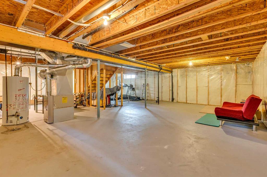 The unfinished basement is a blank canvas, ready for the new owner’s vision—whether that’s additional living space, a home gym, or future development.