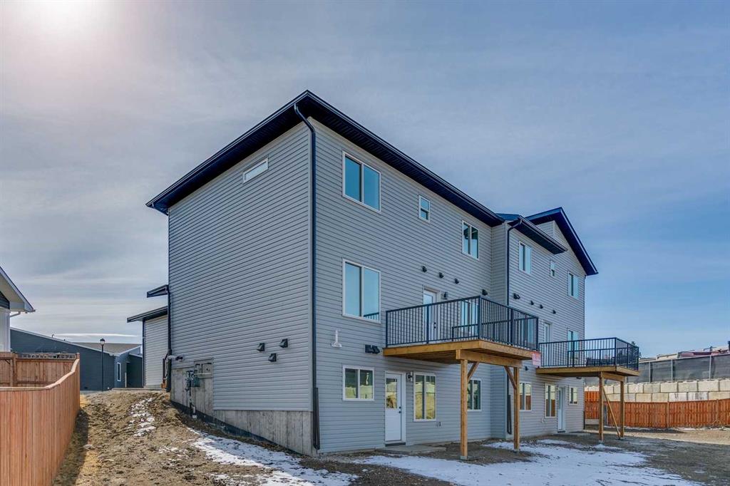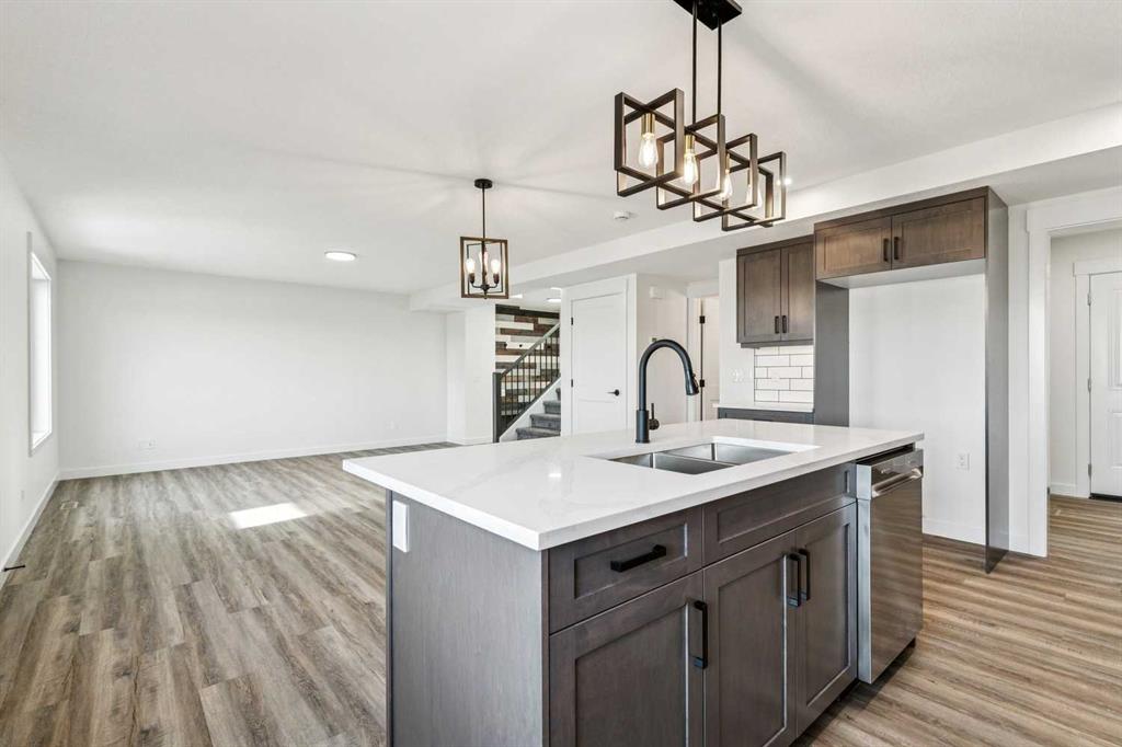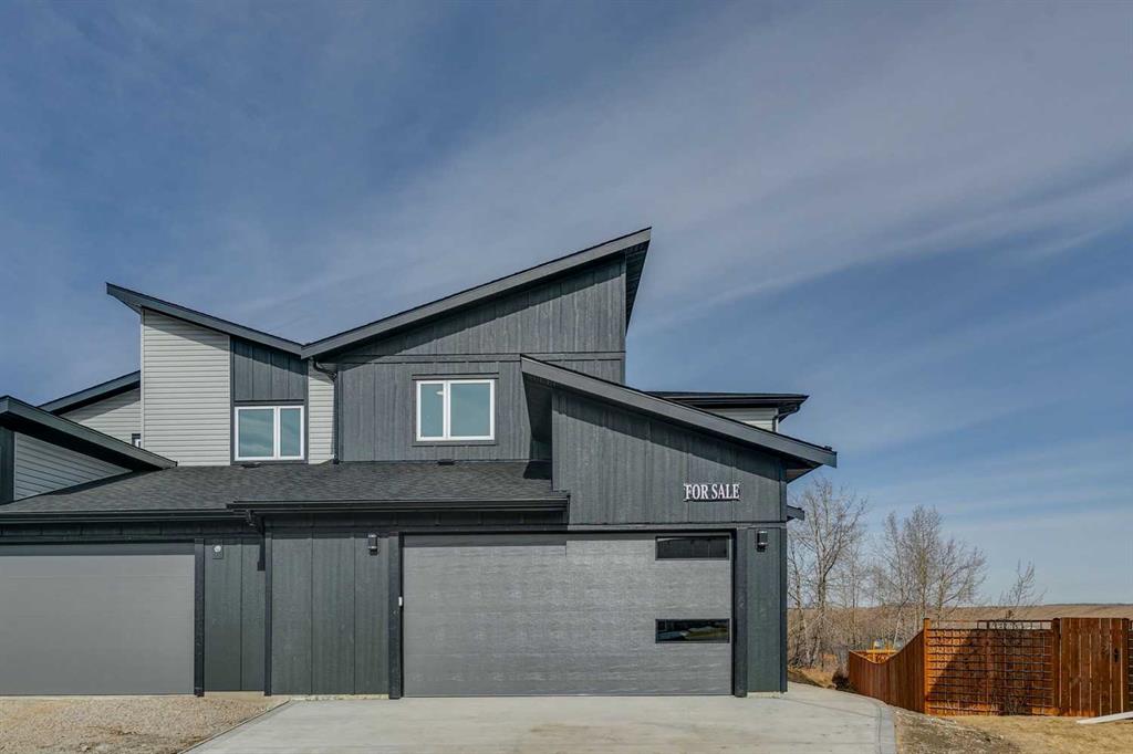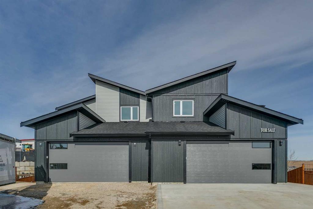 Welcome to this beautifully crafted semi-detached home by Jalin Homes, ideally situated on a quiet cul-de-sac in the charming community of Didsbury. Set on an impressive 8,150 sq ft pie-shaped lot, this property offers exceptional space, privacy, and curb appeal. The oversized double front attached garage and extended driveway ensure parking is never a concern, making this home as functional as it is attractive. Step inside to discover 1,745 sq ft of thoughtfully designed living space, highlighted by luxury vinyl plank flooring, a stunning wood feature wall with built-in bench and coat hooks in the front entry, and a second custom mudroom bench with coat rack for added everyday convenience. The upgraded trim package and spindle railing add a polished, modern touch throughout. The kitchen is a true centerpiece, featuring quartz countertops, undercabinet lighting, a large island, and a large walk-in pantry with wood shelving. The open-concept layout seamlessly connects the kitchen, dining, and living areas—perfect for both entertaining and daily living. Upstairs, you’ll find three spacious bedrooms, a versatile bonus room, and convenient upper-level laundry. The primary suite offers a walk-in closet and a beautifully finished ensuite complete with dual vanities and a fully tiled shower, creating a comfortable and functional retreat. The walk-out basement is undeveloped and full of opportunity, with rough-ins for in-floor heat, a bathroom, and a wet bar or future kitchen. Whether you’re looking to expand your living space or explore additional possibilities (subject to municipal approvals), this lower level provides incredible flexibility. Enjoy immediate possession and peace of mind with a 10-year new home warranty. Located in the welcoming town of Didsbury, you’ll appreciate the strong sense of community along with convenient access to schools, parks, walking paths, and local amenities—all while being within an easy commute to Airdrie and Calgary.