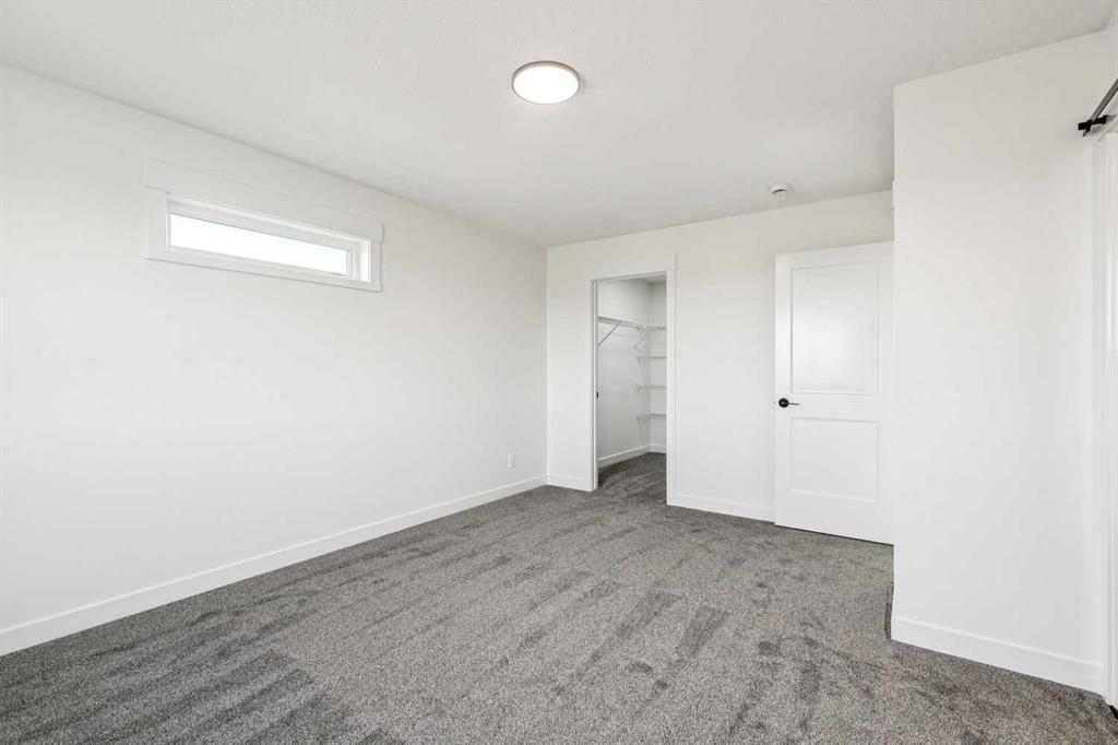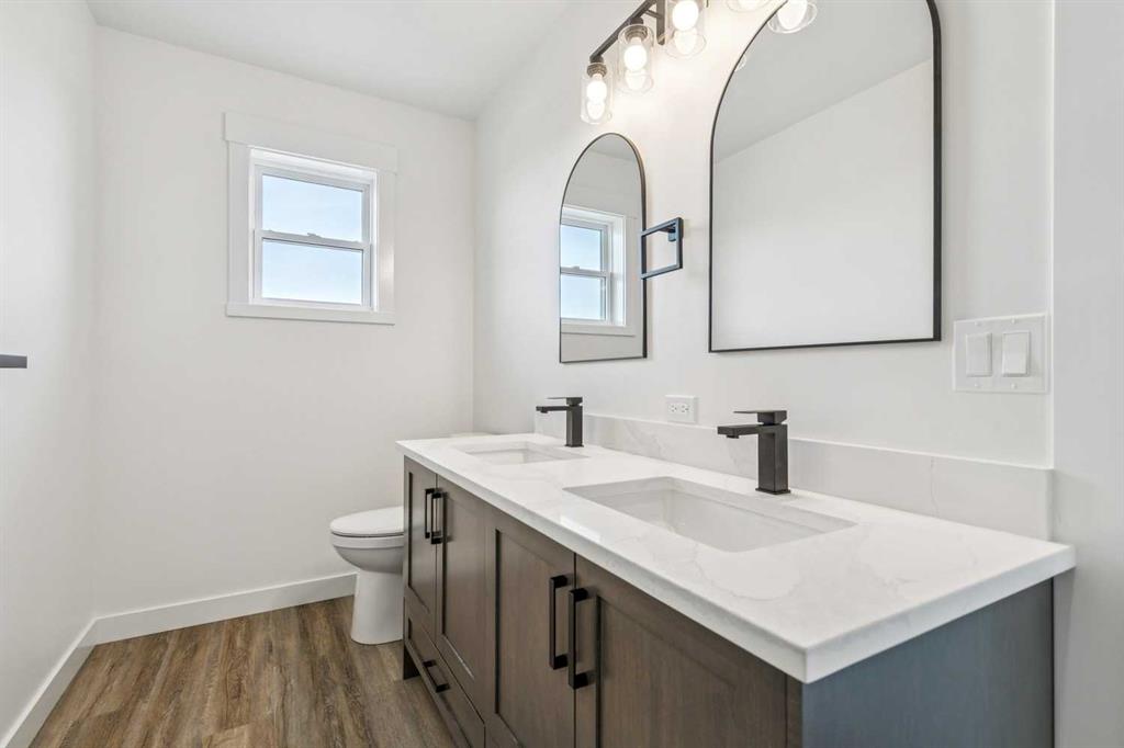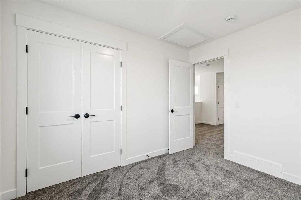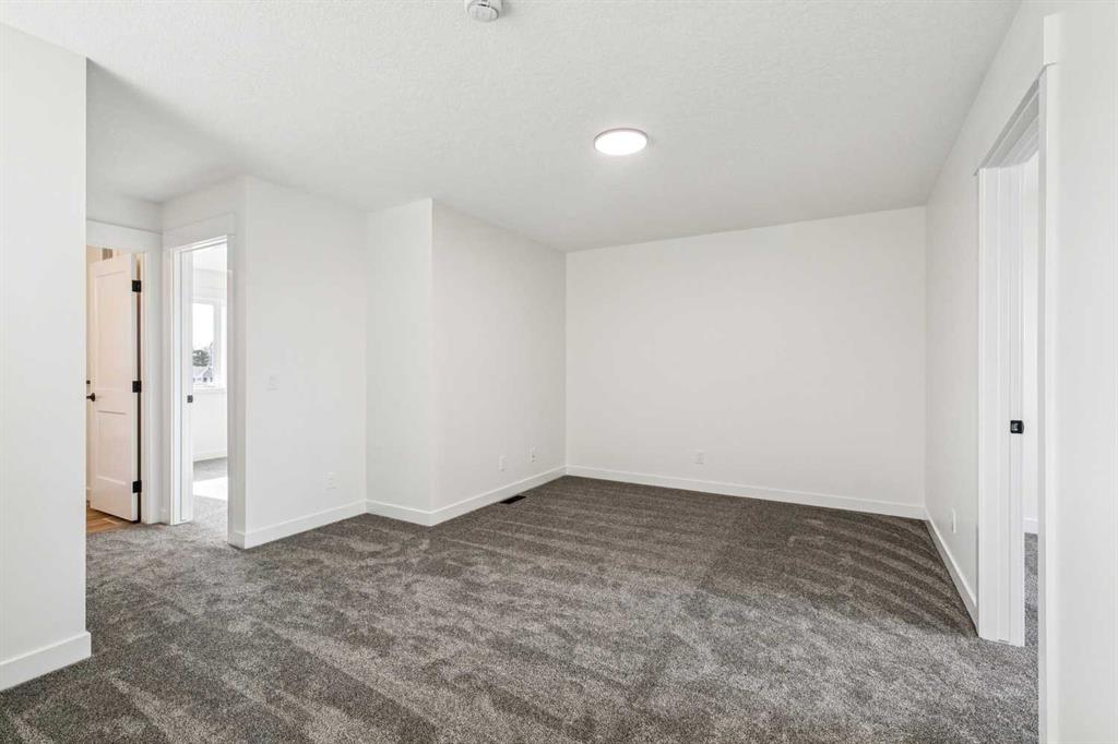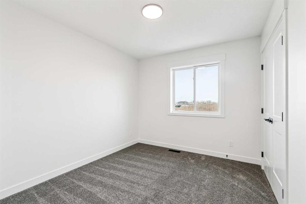 Welcome to this beautifully crafted semi-detached home by Jalin Homes, ideally situated on a quiet cul-de-sac in the charming community of Didsbury. Set on an impressive 8,150 sq ft pie-shaped lot, this property offers exceptional space, privacy, and curb appeal. The oversized double front attached garage and extended driveway ensure parking is never a concern, making this home as functional as it is attractive. Step inside to discover 1,745 sq ft of thoughtfully designed living space, highlighted by luxury vinyl plank flooring, a stunning wood feature wall with built-in bench and coat hooks in the front entry, and a second custom mudroom bench with coat rack for added everyday convenience. The upgraded trim package and spindle railing add a polished, modern touch throughout. The kitchen is a true centerpiece, featuring quartz countertops, undercabinet lighting, a large island, and a large walk-in pantry with wood shelving. The open-concept layout seamlessly connects the kitchen, dining, and living areas—perfect for both entertaining and daily living. Upstairs, you’ll find three spacious bedrooms, a versatile bonus room, and convenient upper-level laundry. The primary suite offers a walk-in closet and a beautifully finished ensuite complete with dual vanities and a fully tiled shower, creating a comfortable and functional retreat. The walk-out basement is undeveloped and full of opportunity, with rough-ins for in-floor heat, a bathroom, and a wet bar or future kitchen. Whether you’re looking to expand your living space or explore additional possibilities (subject to municipal approvals), this lower level provides incredible flexibility. Enjoy immediate possession and peace of mind with a 10-year new home warranty. Located in the welcoming town of Didsbury, you’ll appreciate the strong sense of community along with convenient access to schools, parks, walking paths, and local amenities—all while being within an easy commute to Airdrie and Calgary.