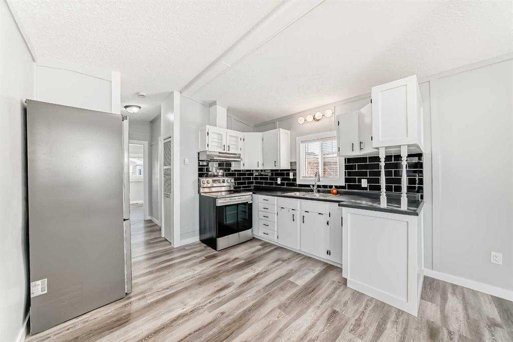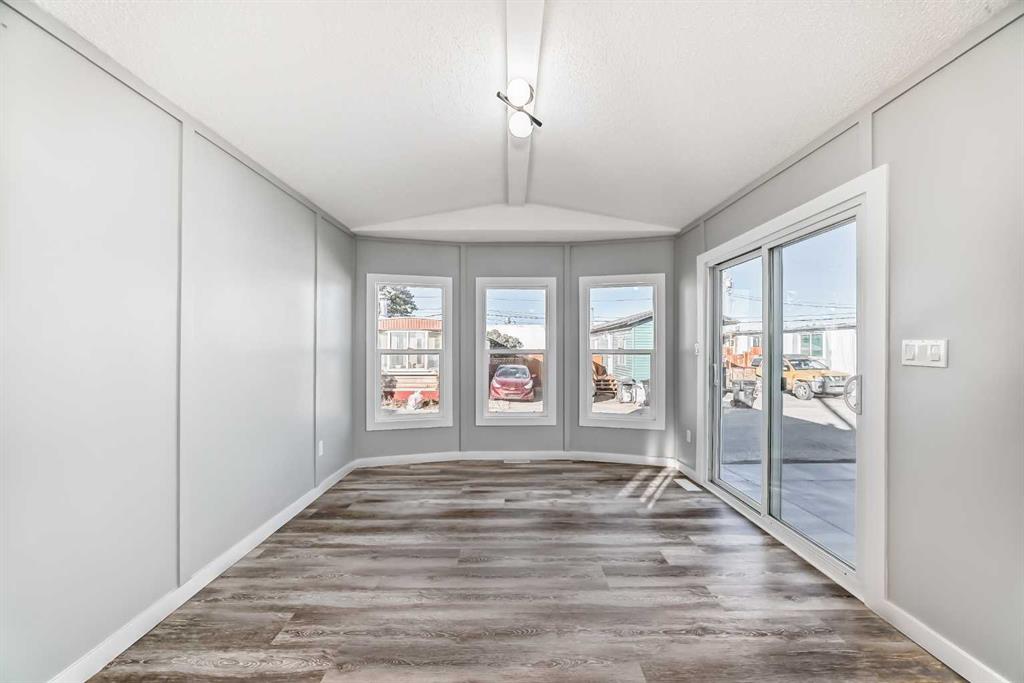 Back on the market due to financing…Re-done Park Model… Oasis Mobile Home Park. If quiet and bright is what your looking for.. look no further. This 1985 park model home with 1 bedroom, 1 (4 pc) bathroom, offers a spacious design with high ceilings, multiple large (vinyl) windows that allows a sunshine to pour in. Newly renovated with classy finishes, fresh painted, new (laminate) flooring and kitchen appliances. The attached garage (550 sqft) is insulated, wired for 240 amps, epoxy floor and new concrete driveway. Perfect for vehicles, workshop or extra storage. Affordable lot lease rate ($760.00 per month), including water, sewer, snow removal, park maintenance. Book your showing today with your favorite Realtor.