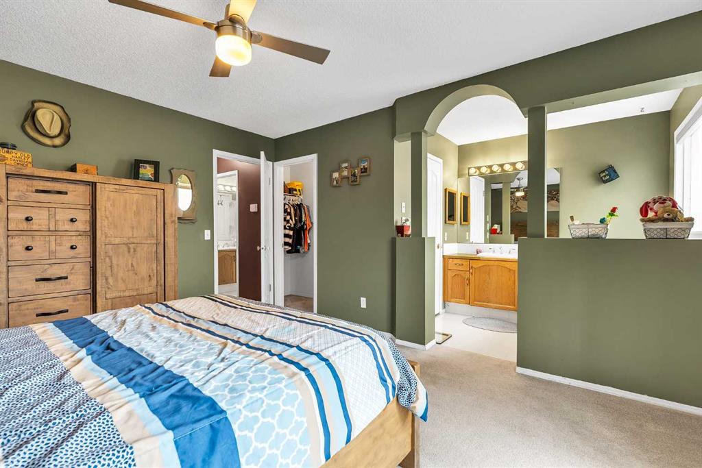 Located in the highly desirable community of Bow Meadows, this home presents an incredible opportunity for the next owner. Situated on an oversized 7,265 sq. ft. corner lot, the property features a sun soaked south facing backyard perfect for gardening, relaxing, and entertaining. Step inside to a functional split level layout highlighted by vaulted ceilings, large windows, and an abundance of natural light. The spacious main living and dining areas are ideal for hosting, while the layout provides excellent separation of space for growing families. The primary bedroom is privately positioned at the rear of the home and features its own ensuite. The upper level is completed with two additional bedrooms and a full main bath. The lower level offers a large family room—perfect for entertaining or setting up a games area—with a cozy gas fireplace for those cooler winter days. Two additional bedrooms provide flexibility for a home office, gym, guests, or multi-generational living. This level also includes another full bathroom, laundry, and ample storage. The location is truly exceptional, surrounded by the natural beauty of the Bow River, Jumping pound Creek, environmental reserve parks, and a local beach—all just steps from your front door. Enjoy endless walking and biking along scenic pathways that wind through rivers, ponds, and rolling hills. Bow Meadows is known for its strong sense of community, great neighbours, and access to playgrounds, soccer fields, dog parks, and extensive pathway systems. Here is a rare opportunity to secure a home in one of Cochrane’s most sought-after river communities.