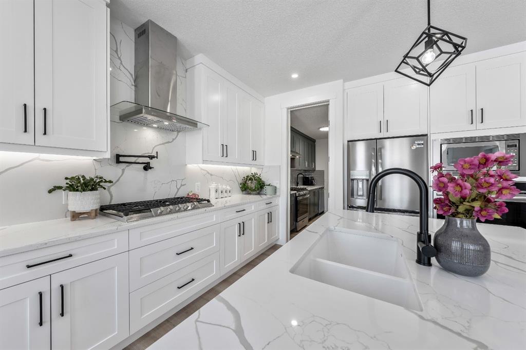 This could be the home you’ve been waiting for. Welcome to 27 Bridges Drive, located in the desirable community of The Bridges of Langdon, ideally positioned between the brand-new high school and The Track Golf Course in Boulder Creek Estates. This beautiful two-storey home is set on a quiet street directly across from green space and a children’s park, offering an exceptional location for families. From the moment you arrive, you’ll appreciate the attractive curb appeal and the triple attached garage. Step inside to a spacious front entry, where a generous den or flex room with large west-facing windows provides the perfect space for a home office or study. The kitchen is filled with natural light, highlighting the crisp white cabinetry, quartz countertops, stainless steel appliances, and soft-close drawers. Just off the main kitchen is a highly functional spice kitchen complete with a second gas stove, range hood, and dishwasher, ideal for everyday cooking or entertaining. The dining area opens onto the rear deck, making it perfect for hosting family and friends, while the large living room with a gas fireplace creates a warm and inviting space for cooler winter evenings. The main level is completed by a three-piece bathroom and a well-designed mudroom with direct access to the garage. Vinyl plank flooring leads you upstairs to a bright bonus room featuring in-ceiling speakers and west-facing windows overlooking the park, allowing you to keep an eye on the kids at play. The primary bedroom offers a private retreat with a spacious walk-in closet and a five-piece ensuite. Two additional large bedrooms, a four-piece bathroom, and a practical laundry room with sink complete the upper level. The basement remains unfinished, offering an open layout with large windows and excellent potential for future development. The backyard is ready for your personal touches. Book your private viewing today and experience everything this exceptional Langdon home has to offer your family!