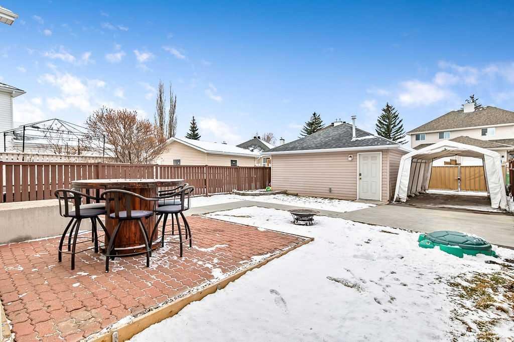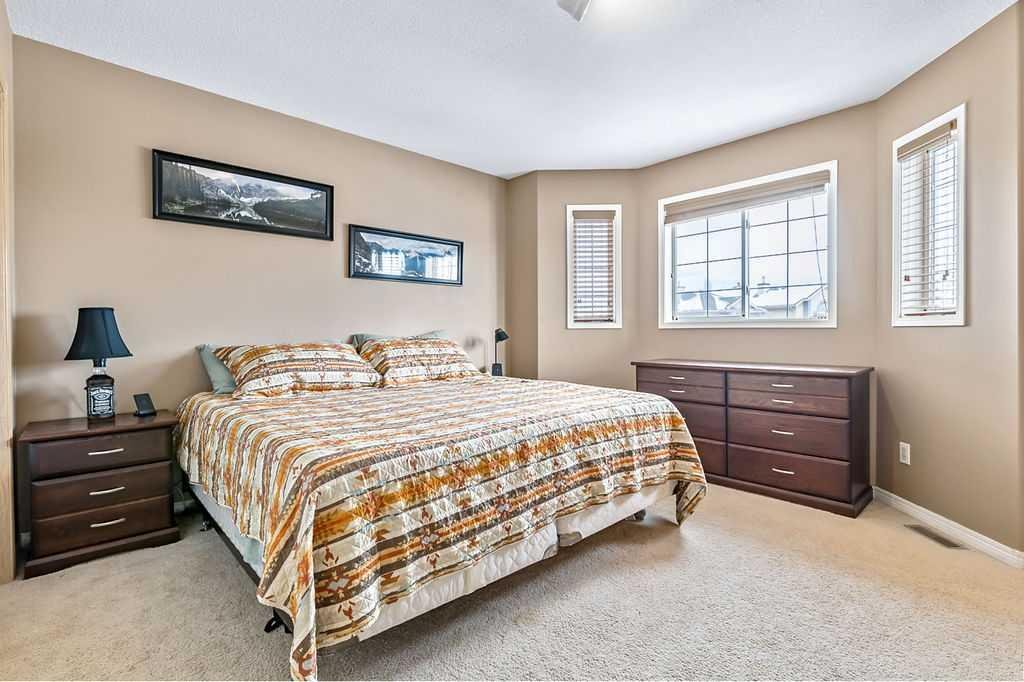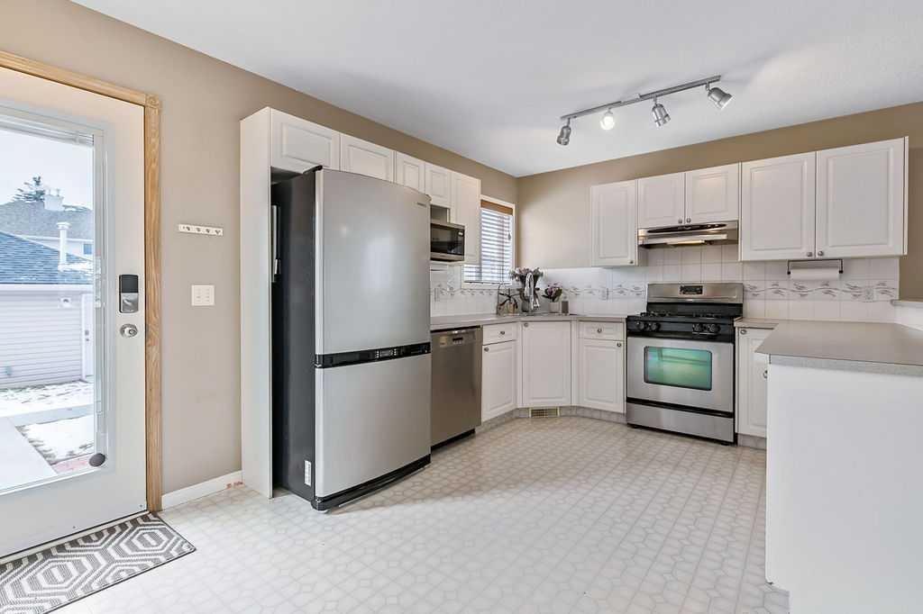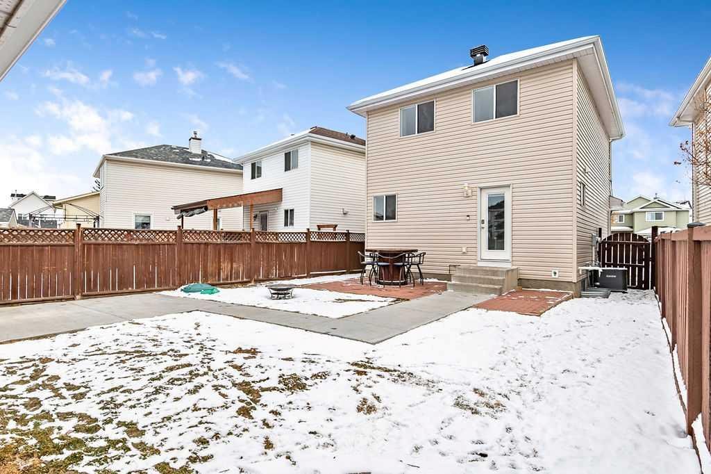 Welcome to this beautifully maintained open-concept two-storey home in the desirable community of Chaparral! Boasting fantastic curb appeal with neutral stone and siding, this inviting property offers both comfort and functionality for modern family living. Step inside to a spacious foyer that flows into a bright and airy family room, where large front bay windows fill the space with natural light. The heart of the home is the stunning WHITE kitchen, complete with stainless steel appliances, a gas stove, built-in dishwasher, and a massive walk-in pantry with wood shelving. The generous eating bar is perfect for casual dining or entertaining guests. From the kitchen, enjoy easy access to the backyard patio, fully fenced yard, and double insulated garage with an additional parking pad. A convenient 2-piece bath completes the main level. Upstairs, you’ll find three well-appointed bedrooms and a 4-piece main bathroom. The spacious primary retreat features its own bay window and a private 4-piece ensuite. The fully developed basement offers a large recreation/family room—perfect for movie nights or a kids’ play area—along with a laundry and storage space that provides plenty of room for future development. Additional highlights include air conditioning and a private backyard ideal for summer BBQs and cozy evening fires, a concrete walkway, and extra parking beside the garage—perfect for an RV or additional vehicles. Situated on a quiet street and close to schools, parks, and shopping, this home truly has it all. A must-see!