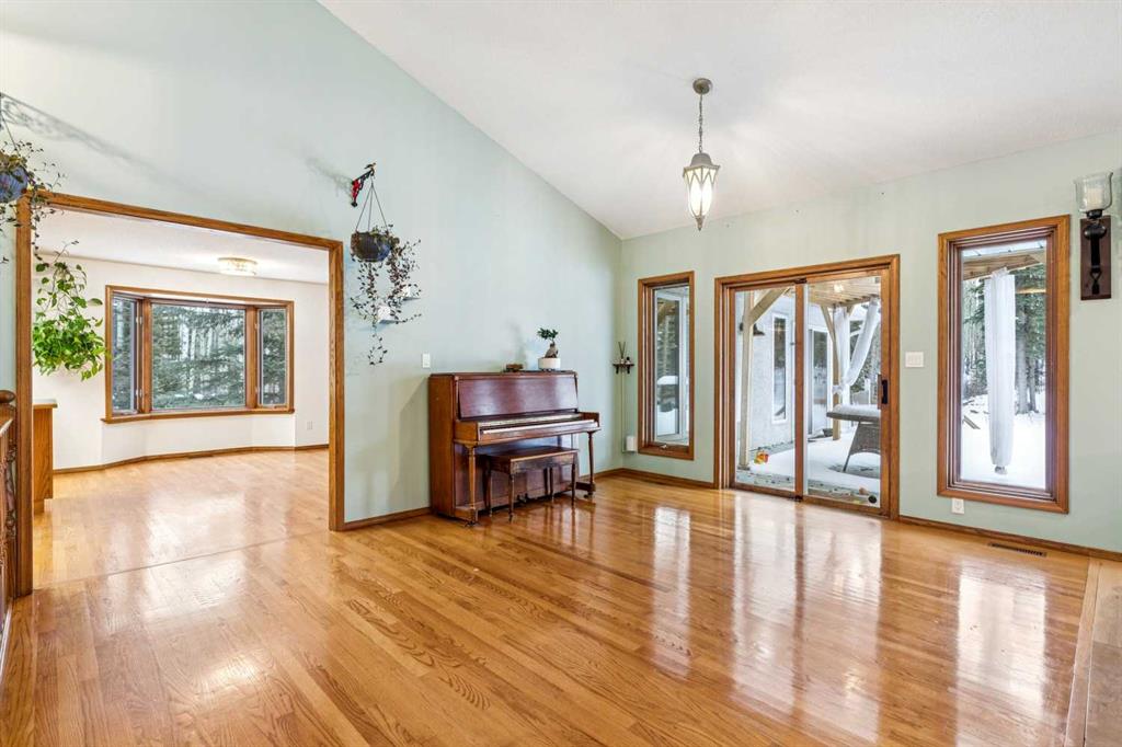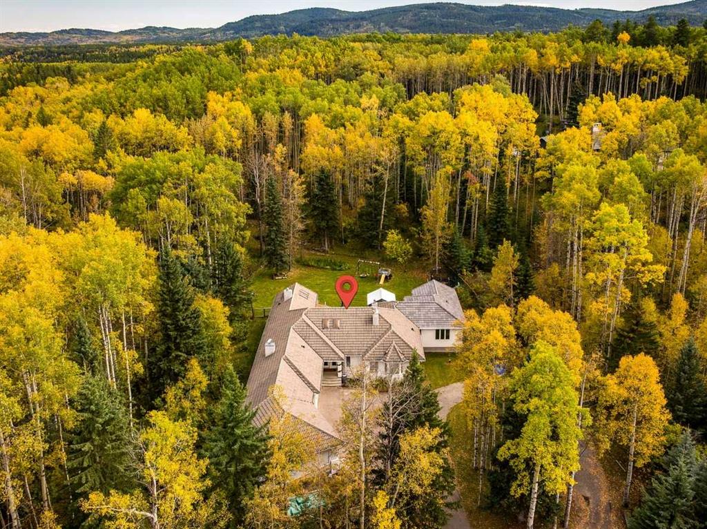 OPEN HOUSE SAT APRIL 4 2-4PM | Set on two fully treed private acres backing directly onto trail systems leading into Kananaskis. Enjoy a stroll with natural rivers, streams, and quiet forests. This extraordinary bungalow offers over 6000 square feet of solid, enduring construction allowing you the opportunity to own ample space and quality that cannot be recreated at this price point. Your gigantic main living area draws the eye upward with high vaulted ceilings. Natural oak floors throughout can be reimagined in any stain, and the entertainment area has been designed with a sunken floor to add dimension while you are warmed by the Napoleon wood burning fireplace – one of three fireplaces (2 gas) in the home. The large wood clad windows and sliding doors draw the beauty of the serene landscape in with a color palette that blends with the natural beauty surrounding the property. This solid home has been thoughtfully designed and built with extended cottage overhangs and stone exterior to keep the elements out and your warmth inside in winter, paired with beautiful bay windows to draw in natural air cooling during summer months. All oversized, recently upgraded appliances are ready for your family including chef grade dual-wall oven, fridge, dishwasher and ample laundry walk-in ready to keep the family fun tidy with ease. The home has been upgraded with 3 new, zoned, gas-fired furnaces ensuring individual comfort in the dining, family and sleeping areas. With the home’s natural flow, enjoy entertaining in the many living areas combined with a brand new tucked away wooded hot spring inspired master suite with spa that could easily be doubled in size with the adjacent bedroom/den. Walk out into nature from both the east and west wings of the home from one of 3 glass patio doors giving access to the enormous 700 sq/ft deck, complete with covered gazebo and pergola. 2 oversized double garages combined for a massive ~1200 sq/ft of storage and shop space. Be a part of K-country living and check out Elbow Falls or the world class hiking, biking and skiing trails of West Bragg Creek. Your reimagined country estate awaits! Make sure to ask your Realtor to forward the floor plan, full list of FEATURES and IMPROVEMENTS, RPR and all supplemental information that can be found in supplement documents.