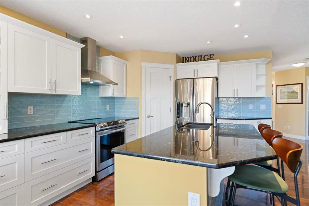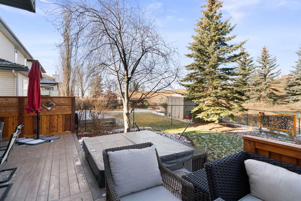 You’re invited to our open houses this Saturday January 17 and Sunday January 18th from 1 – 3 pm. Welcome to 27 Gleneagles Terrace, an inviting, beautifully updated home backing onto the rolling fairways of the GlenEagles Golf Course. Thoughtfully designed with sun-filled living spaces and charming character details throughout, this 2-storey offers over 2,800 sq ft of finished living space in one of Cochrane’s most sought-after communities. The main floor features a bright front office with custom built-ins, a welcoming foyer with a bold statement door, and a spacious living room with soaring ceilings, large windows, and a feature fireplace framed by stylish tile and built-ins. The refreshed kitchen is both functional and eye-catching, showcasing crisp white cabinetry, granite counters, a centre island with seating, stainless steel appliances, and a modern tile backsplash. The dining area enjoys peaceful views of the golf course and easy access to the deck. Upstairs, the primary suite overlooks the treed landscape and features a window bench, built-in shelving, a walk-in closet, and a serene 5-pc ensuite. Two additional bedrooms and a full bath complete the level. The fully developed basement is perfect for family living, offering a large recreation room with a sleek fireplace feature wall, media area, gym space, and ample storage. Step outside to your private backyard oasis, where mature trees create a natural buffer and the hot tub provides the perfect spot to relax while watching the wildlife pass by. This is truly a great settings in Glen Eagles, quiet, scenic, and connected to Cochrane’s extensive pathway system. Beautifully maintained and move-in ready, this home combines comfort, style, and an unbeatable location. Don’t miss your chance to live on the golf course in Glen Eagles!